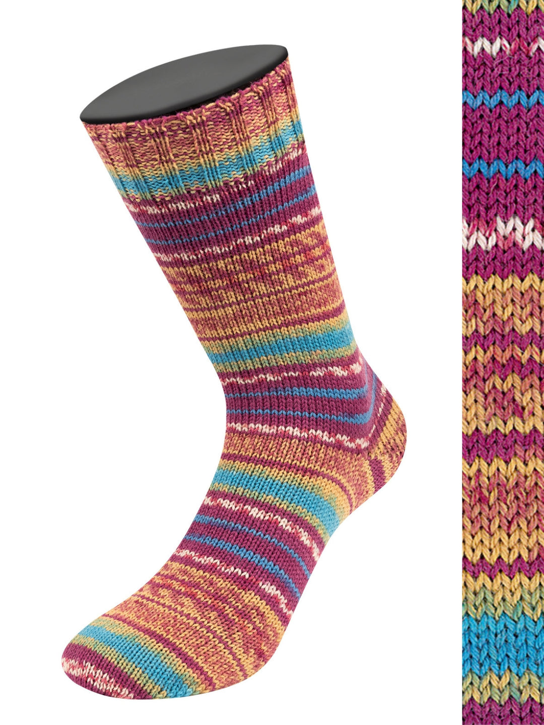 Die Wolle ist wunderbar weich und hat mir schon beim Stricken die Beine gewärmt. Der Farbverlauf gefällt mir auch sehr gut. Ich freue mich schon auf den Winter.
