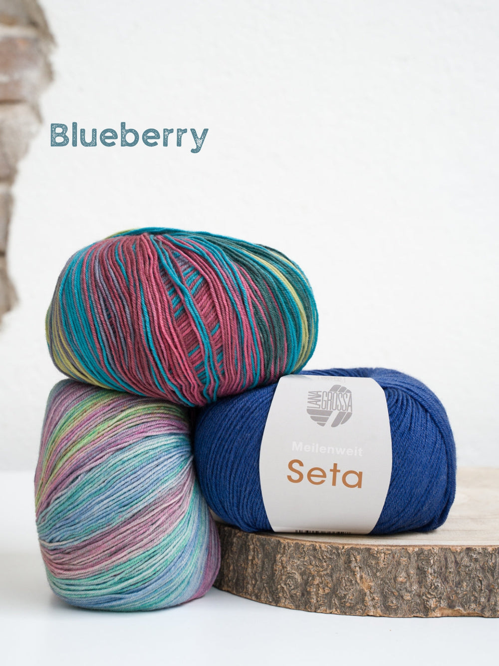 Dies war der erste Pullover, den ich in einem Stück von oben nach unten gestrickt habe. Die Ärmel rund zu stricken fand ich etwas mühsam, aber das Ergebnis gefällt mir und anderen sehr gut. Die Wolle läßt sich sehr gut verstricken, der Farbverlauf ist wunderschön. Sehr angenehm weiche Wolle. Sie scheint mir allerdings etwas empfindlich zu sein und ich hoffe, dass es nicht allzu sehr zu Flusenbildung kommt.