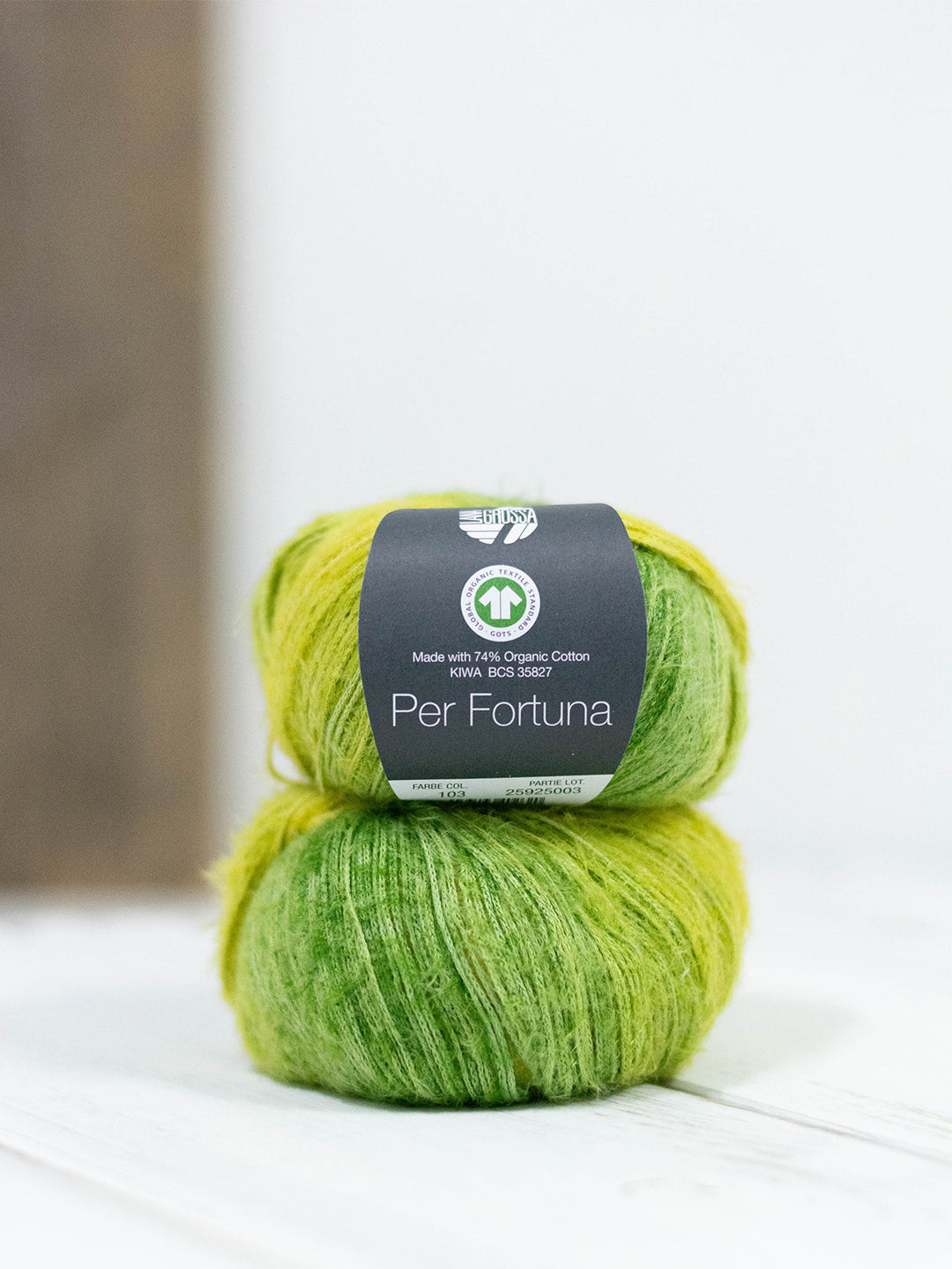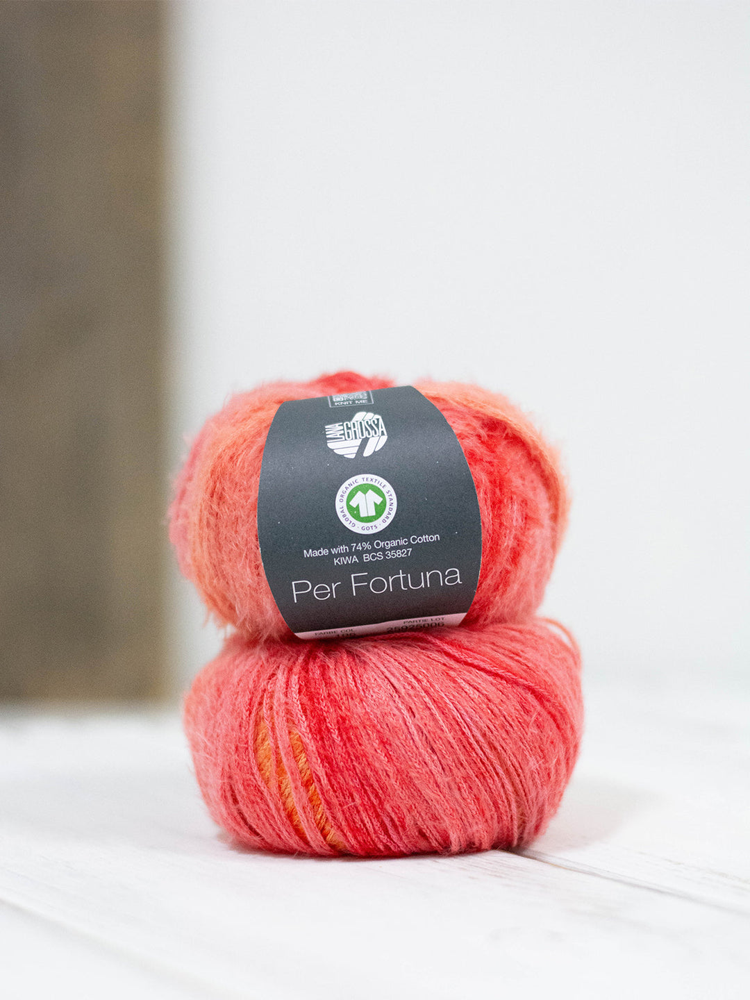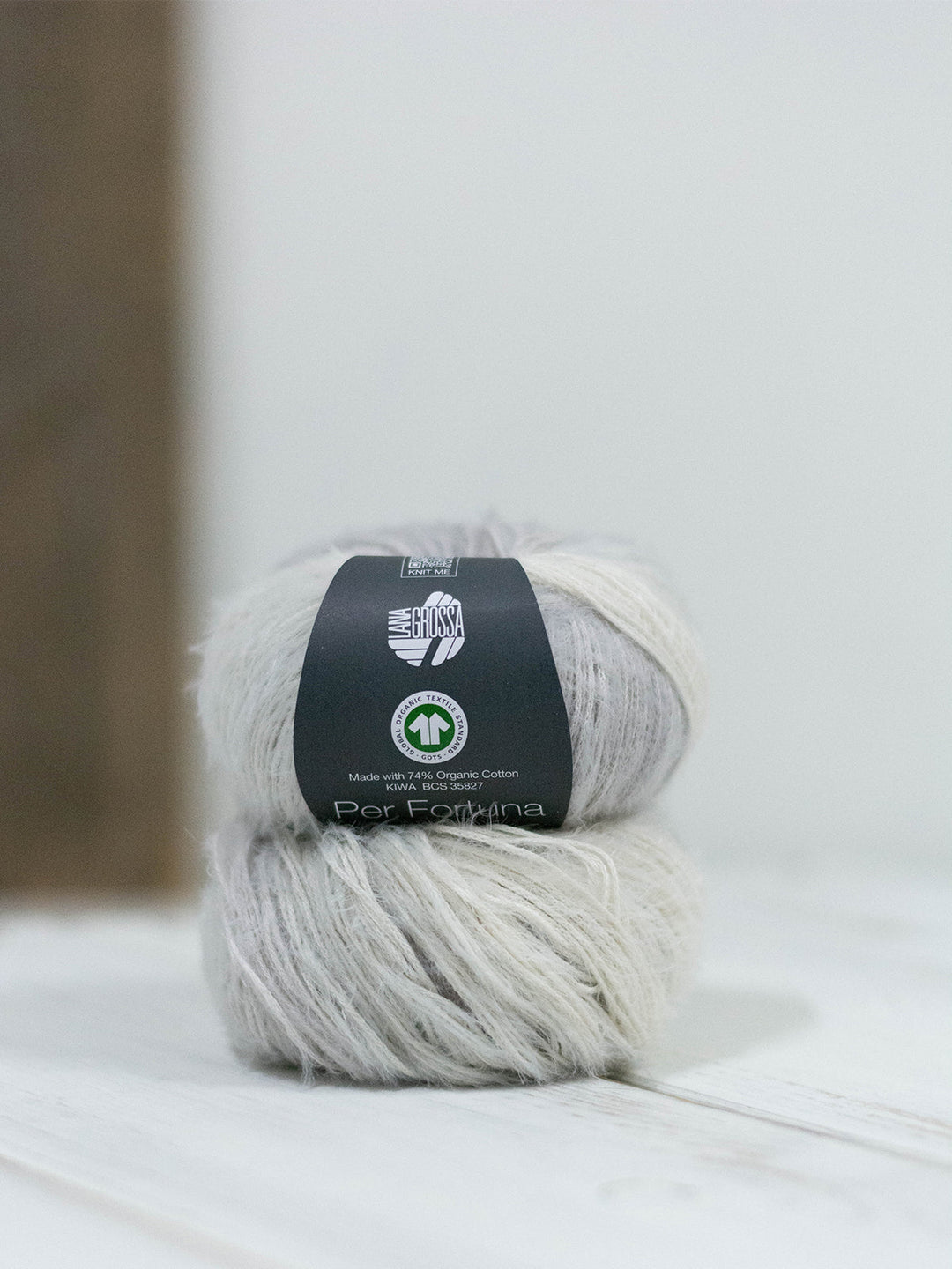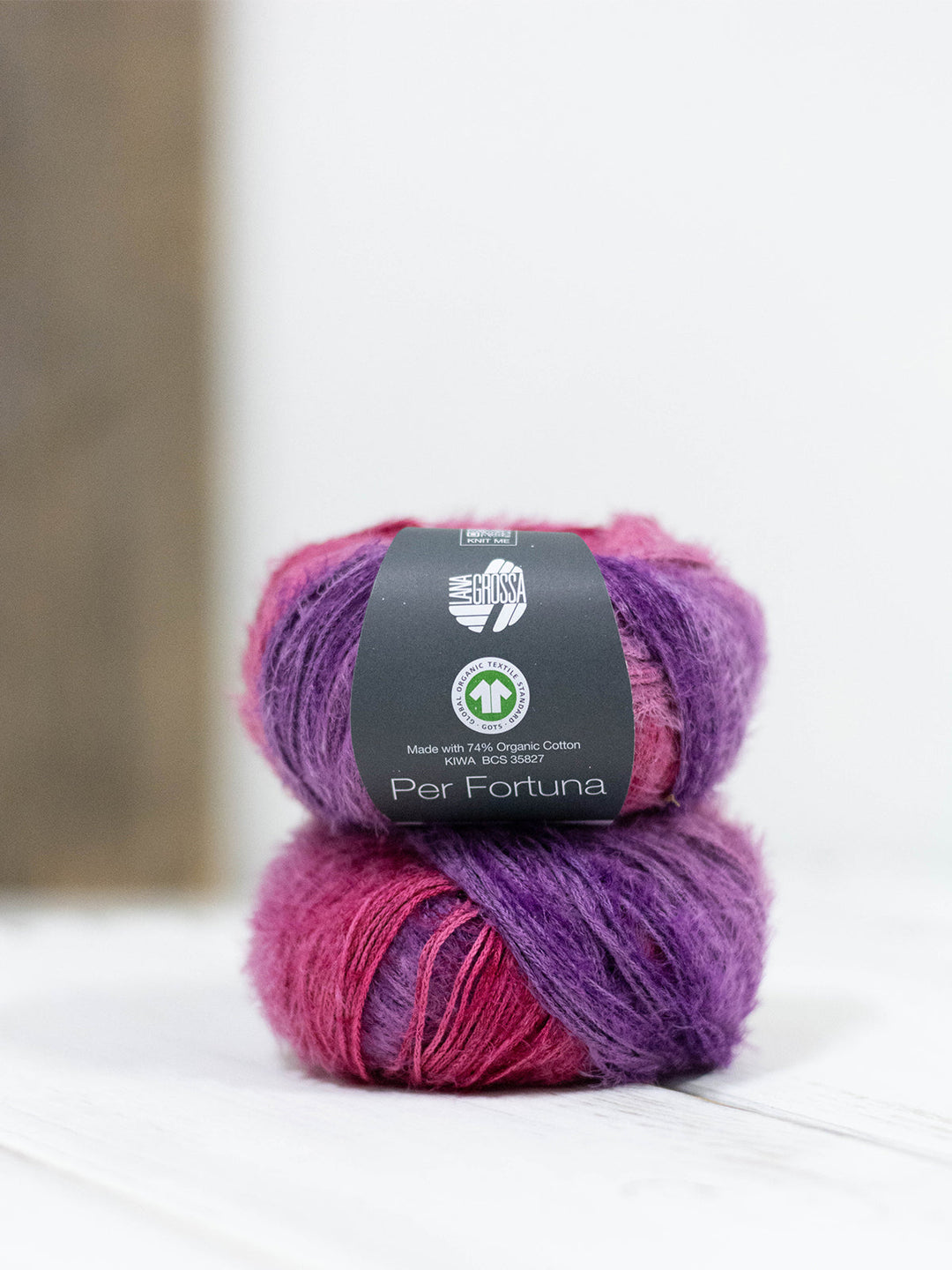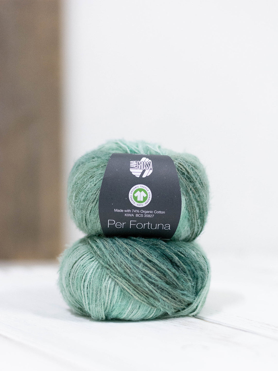 Das Per Fortuna ist ein flauschiges Kettengarn aus einer Mischung aus Bio-Baumwolle und recyceltem Polyamid mit GOTS-Zertifikat.