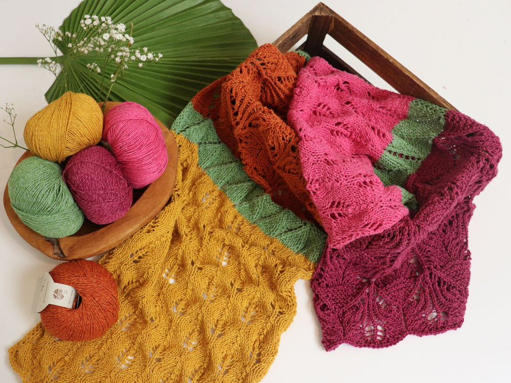 Schals sehen in vielen verschiedenen Garnen wunderschön aus. Im Sommer findest du luftige Schals aus Baumwolle mit offenen Strukturen, während es im Winter kuschelige Schals und Tücher aus dicker Alpakawolle oder Merinowolle gibt.