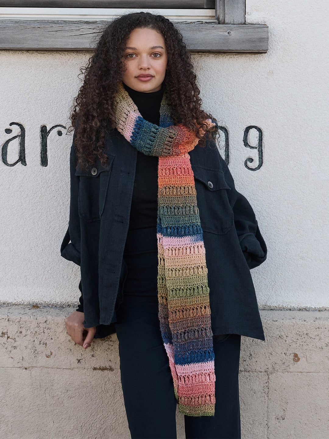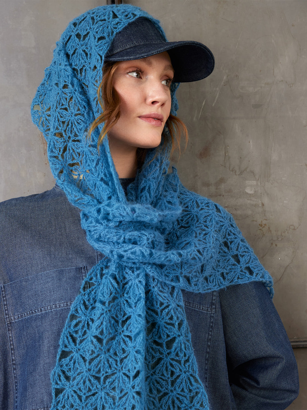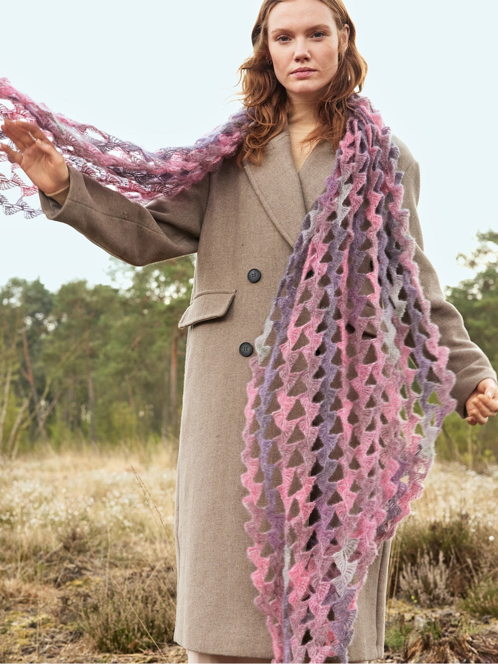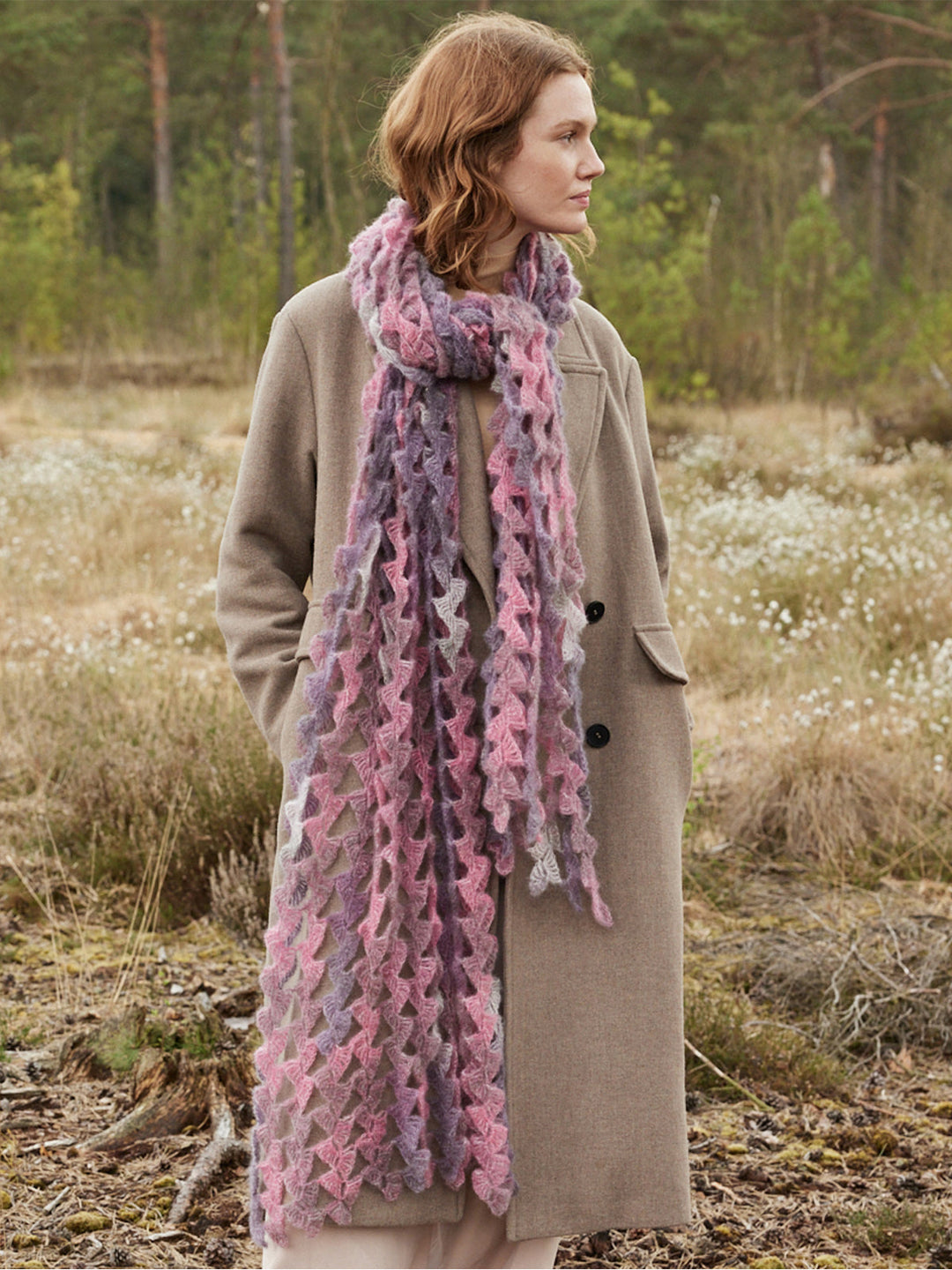 Schals sehen in vielen verschiedenen Garnen wunderschön aus. Im Sommer findest du luftige Schals aus Baumwolle mit offenen Strukturen, während es im Winter kuschelige Schals und Tücher aus dicker Alpakawolle oder Merinowolle gibt.