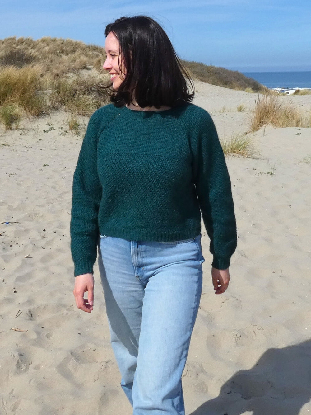 Dies war der erste Pullover, den ich in einem Stück von oben nach unten gestrickt habe. Die Ärmel rund zu stricken fand ich etwas mühsam, aber das Ergebnis gefällt mir und anderen sehr gut. Die Wolle läßt sich sehr gut verstricken, der Farbverlauf ist wunderschön. Sehr angenehm weiche Wolle. Sie scheint mir allerdings etwas empfindlich zu sein und ich hoffe, dass es nicht allzu sehr zu Flusenbildung kommt.