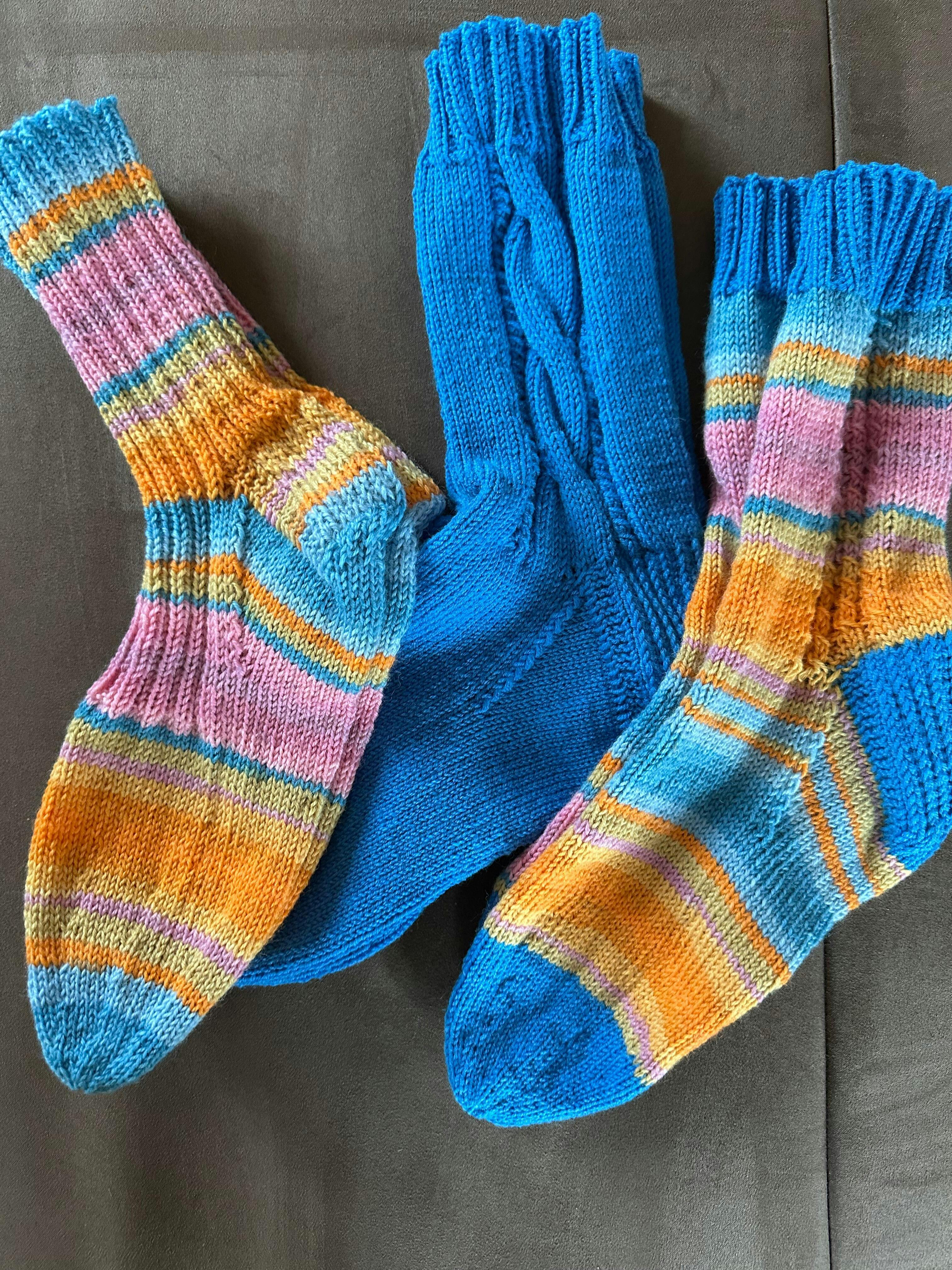 Ich habe aus 2Knäueln 3Paar Strümpfe gestrickt. Ich finde sie total schön