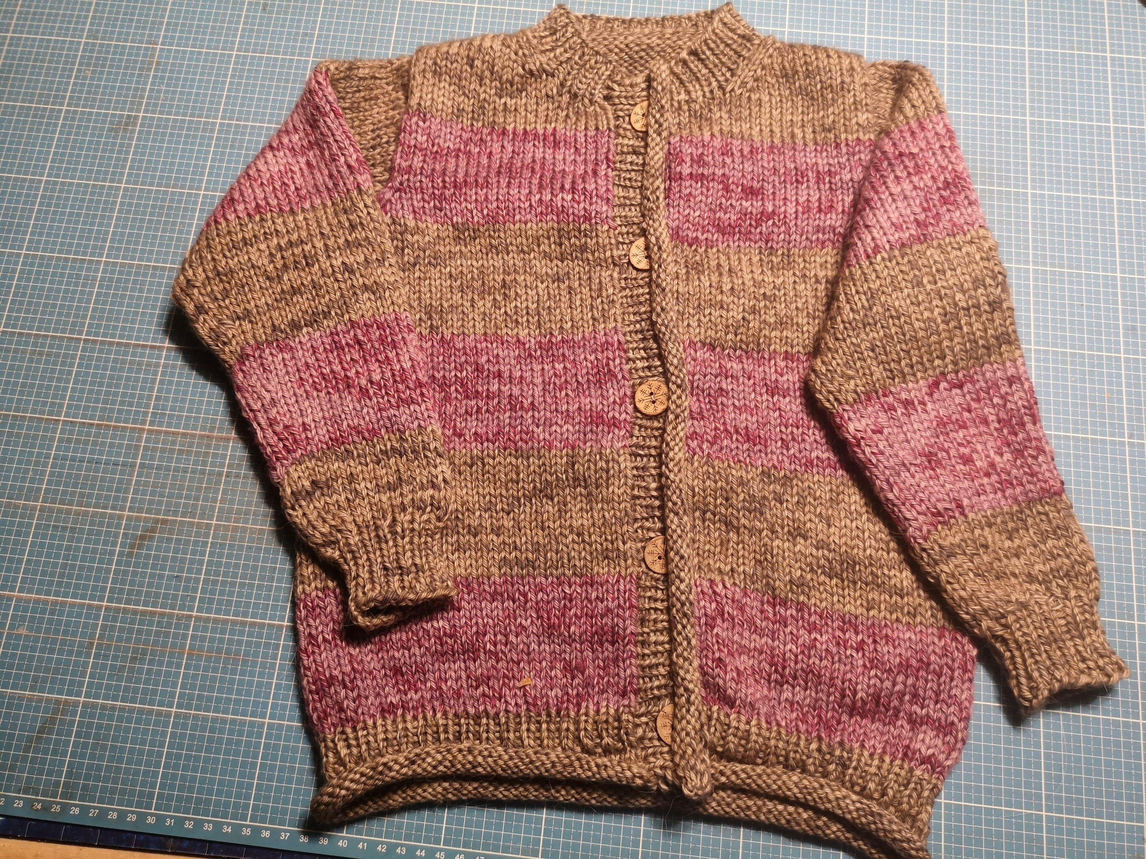 Das Wolle in von wunderbar weicher Qualität und die Farben finde ich wunderschön. Die angegebene Garnmenge ist sehr reichlich bemessen. Ich habe die Anleitung etwas abgewandelt: das Vorder- und Rückenteil um einen Block länger gestrickt und die Rollkante an den Ärmel weggelassen, da ich diese an den Armen als störend empfinde. Trotz des zusätzlichen Blocks hatte ich soviel Wolle über, dass ich aus dem restlichen Garn noch eine passende Mütze gestrickt habe,