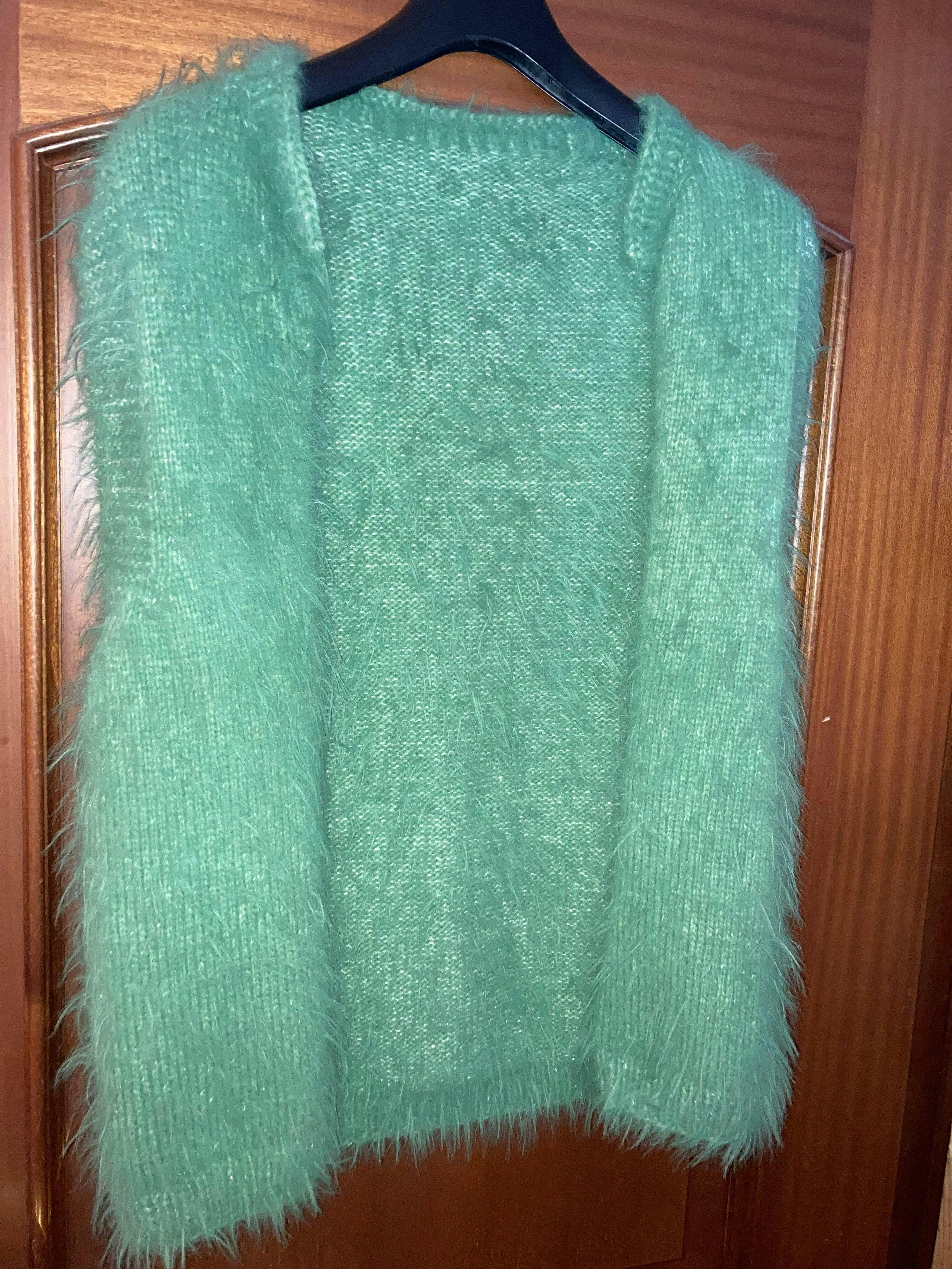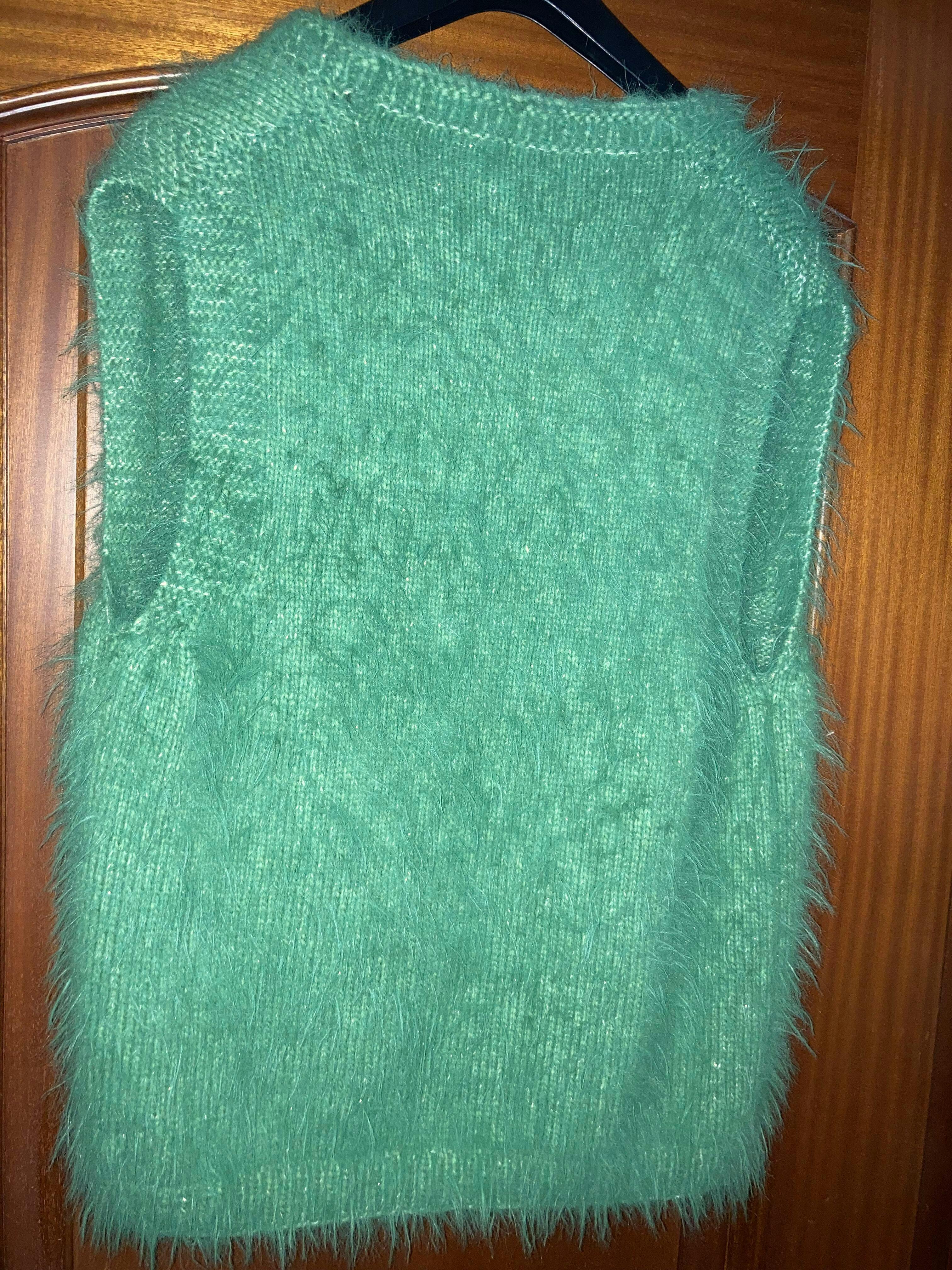 Ich habe im Internet Tanja Steinbach in dieser Weste mit grüner Wolle gesehen und musste sie gleich nachstricken. Bastia mit Glitzer. Traumhaft