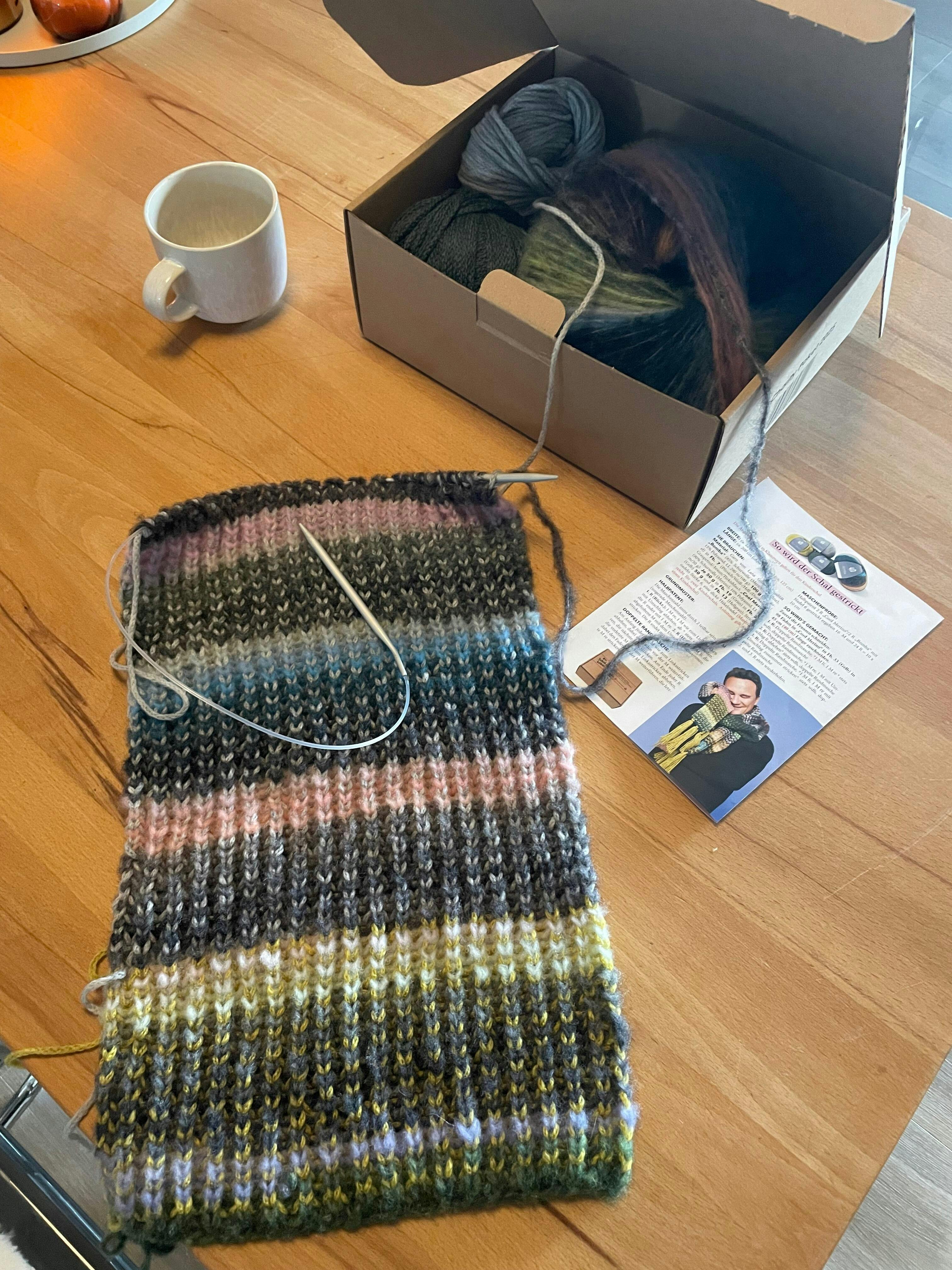 Wie ich es von Knottenwolle gewohnt bin, kam die Lieferung schnell und ich habe mich sofort an das Projekt gemacht. Die Wolle lässt sich gut verarbeiten und hat einen schönen Farbverlauf. Die Anleitung ist leicht verständlich, ich habe den Pullover nur 7 cm länger gestrickt.