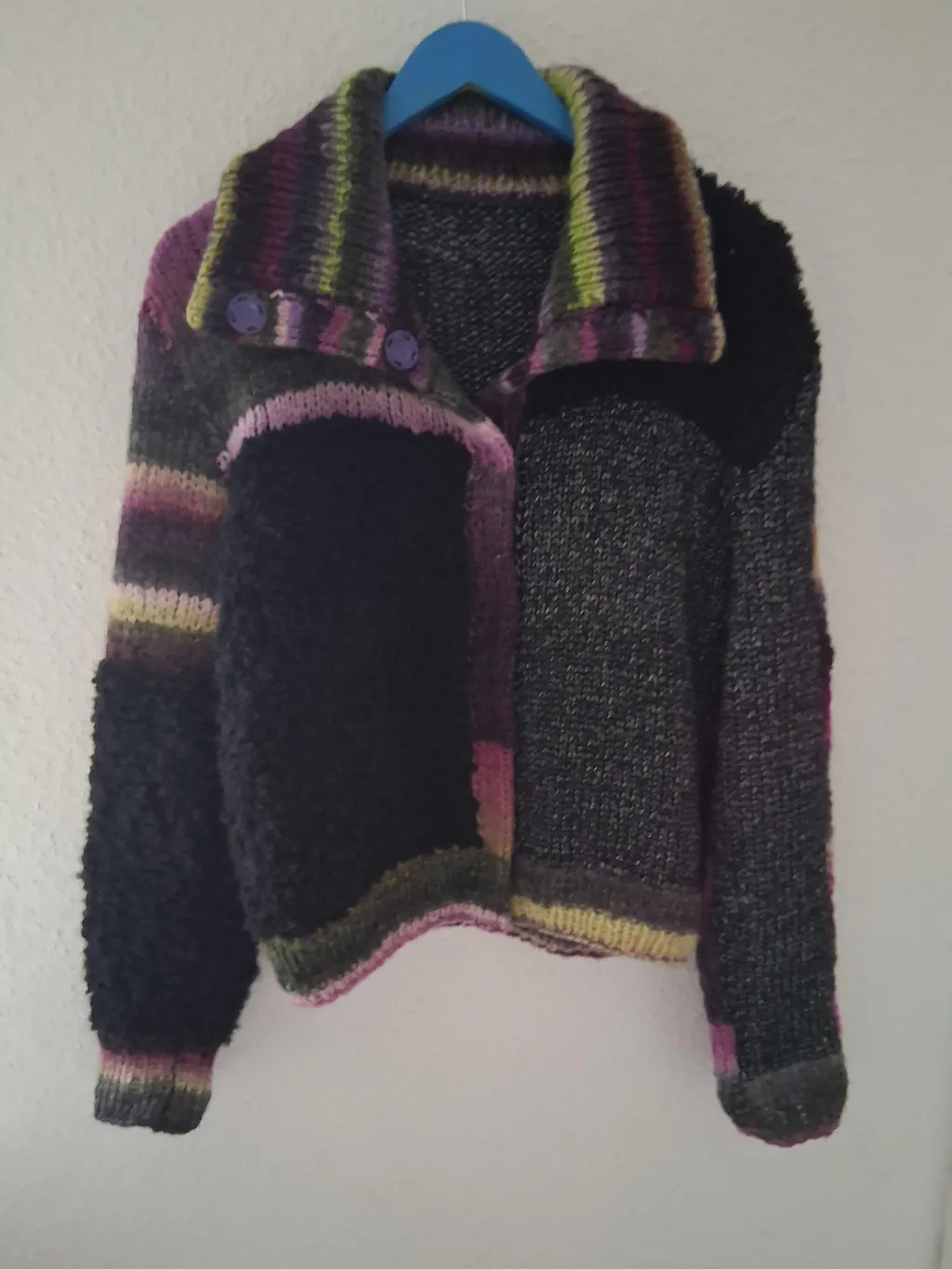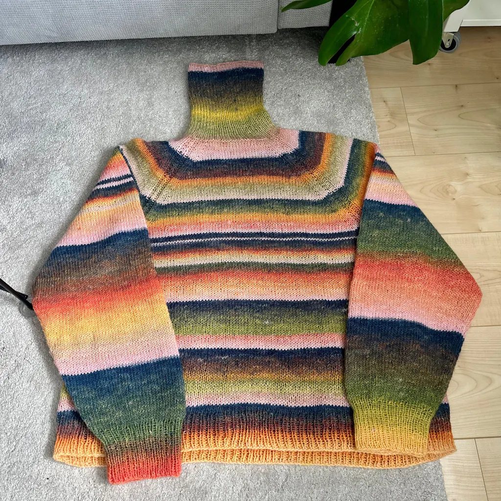 Gestrickt mit Gomitolo Fumo. Das Garn hat sich super verarbeiten lassen und der Farbverlaif macht beim Stricken einfach gute Laune. Von der Größe habe ich es etwas angepasst, da ich nicht so groß bin und meine Arme kürzer sind. Freue mich darauf, ihn anzuziehen, das steht noch aus 💃🏼.