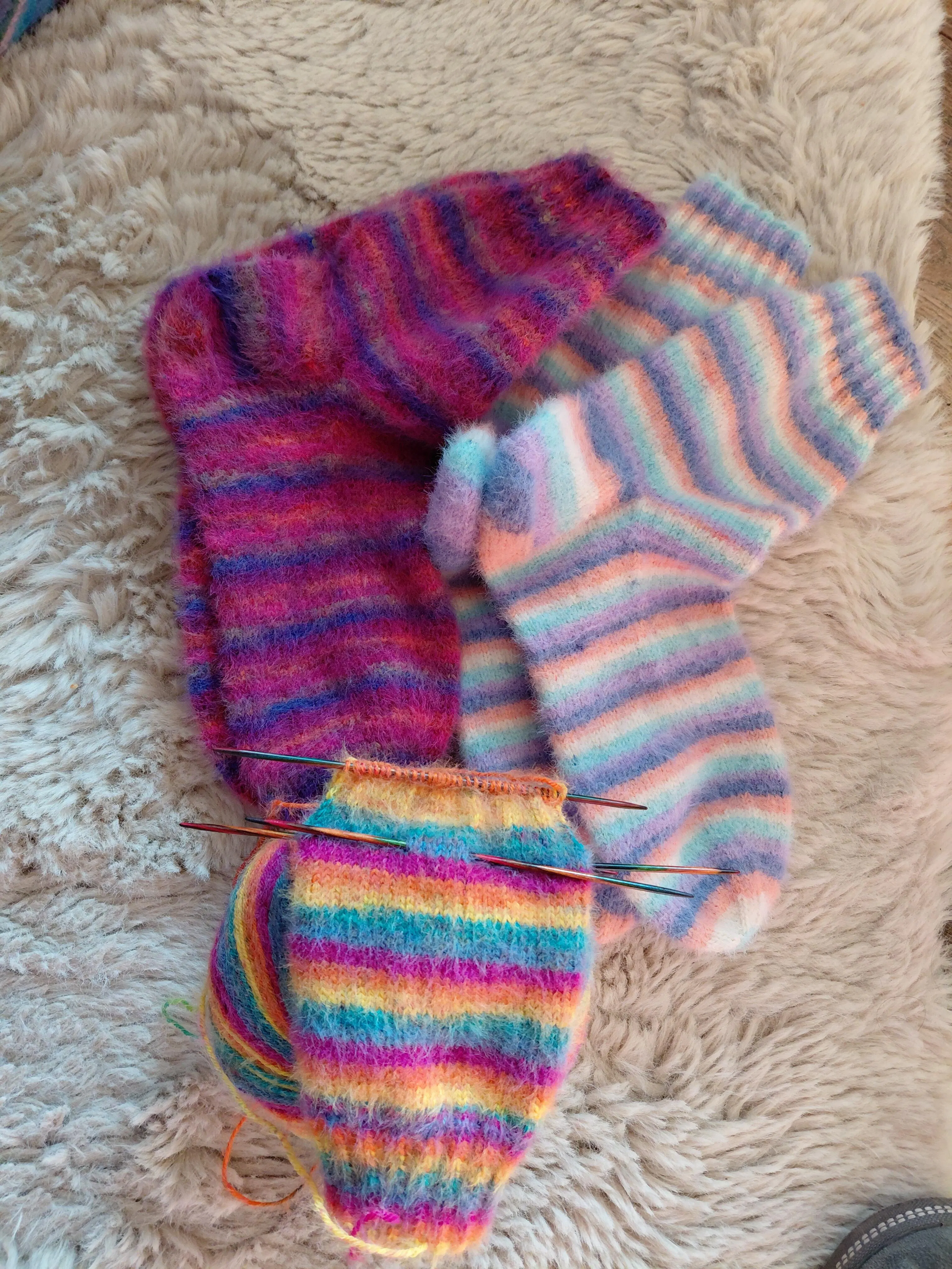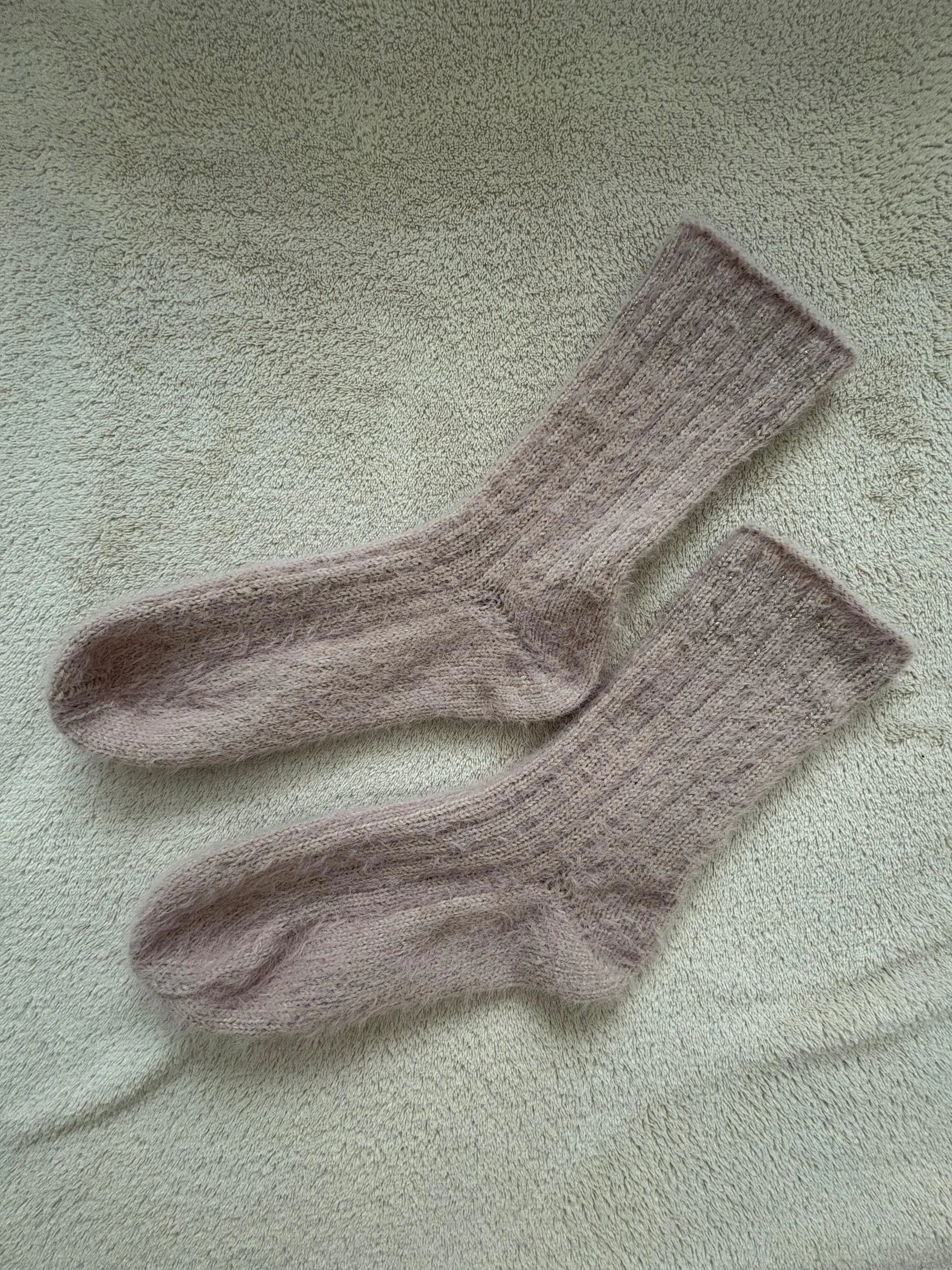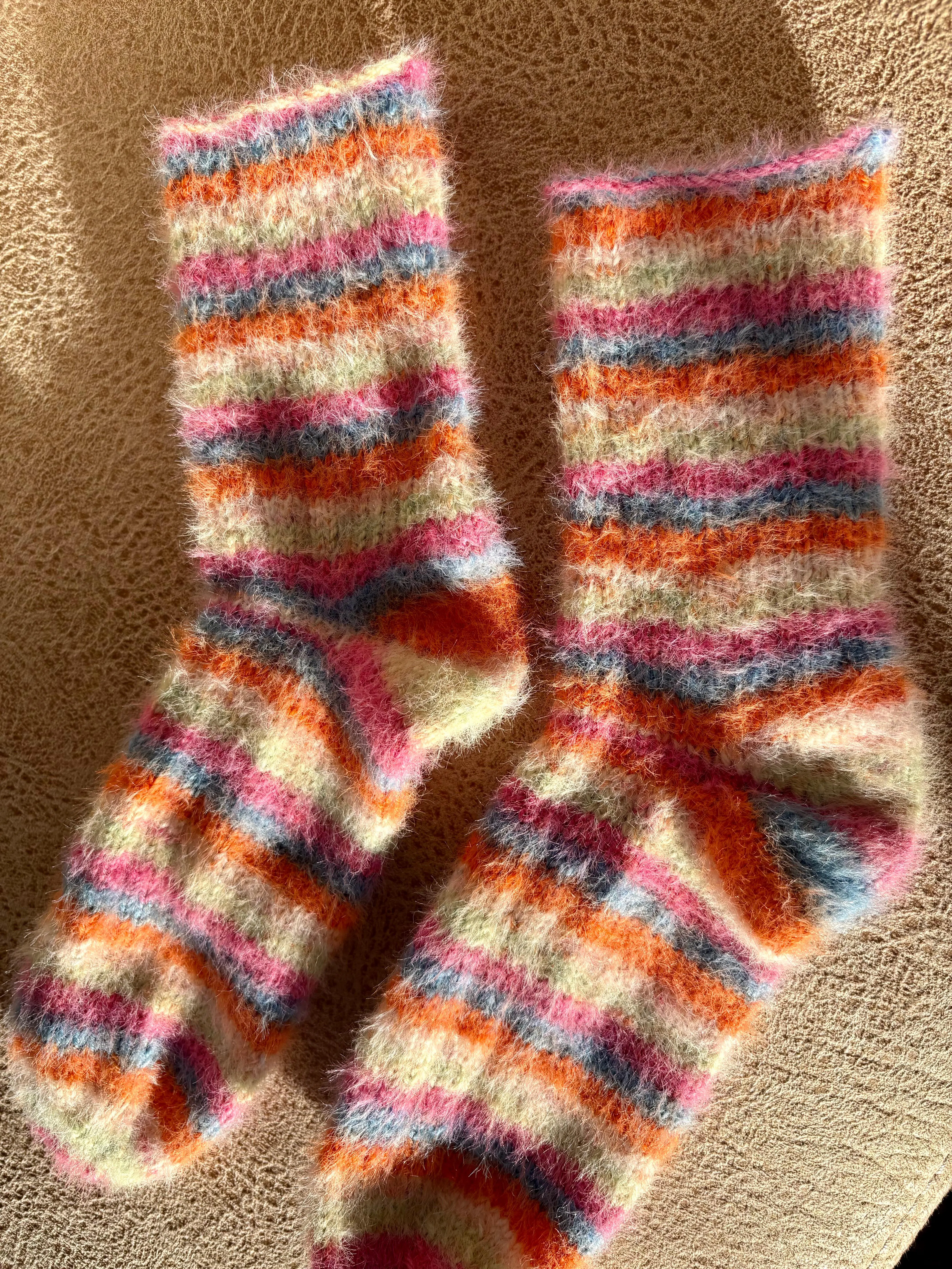 Diese Sockenwolle hat einen leichten Flaum, der sie zu einem idealen Garn für unter anderem kuschelige Haussocken macht.