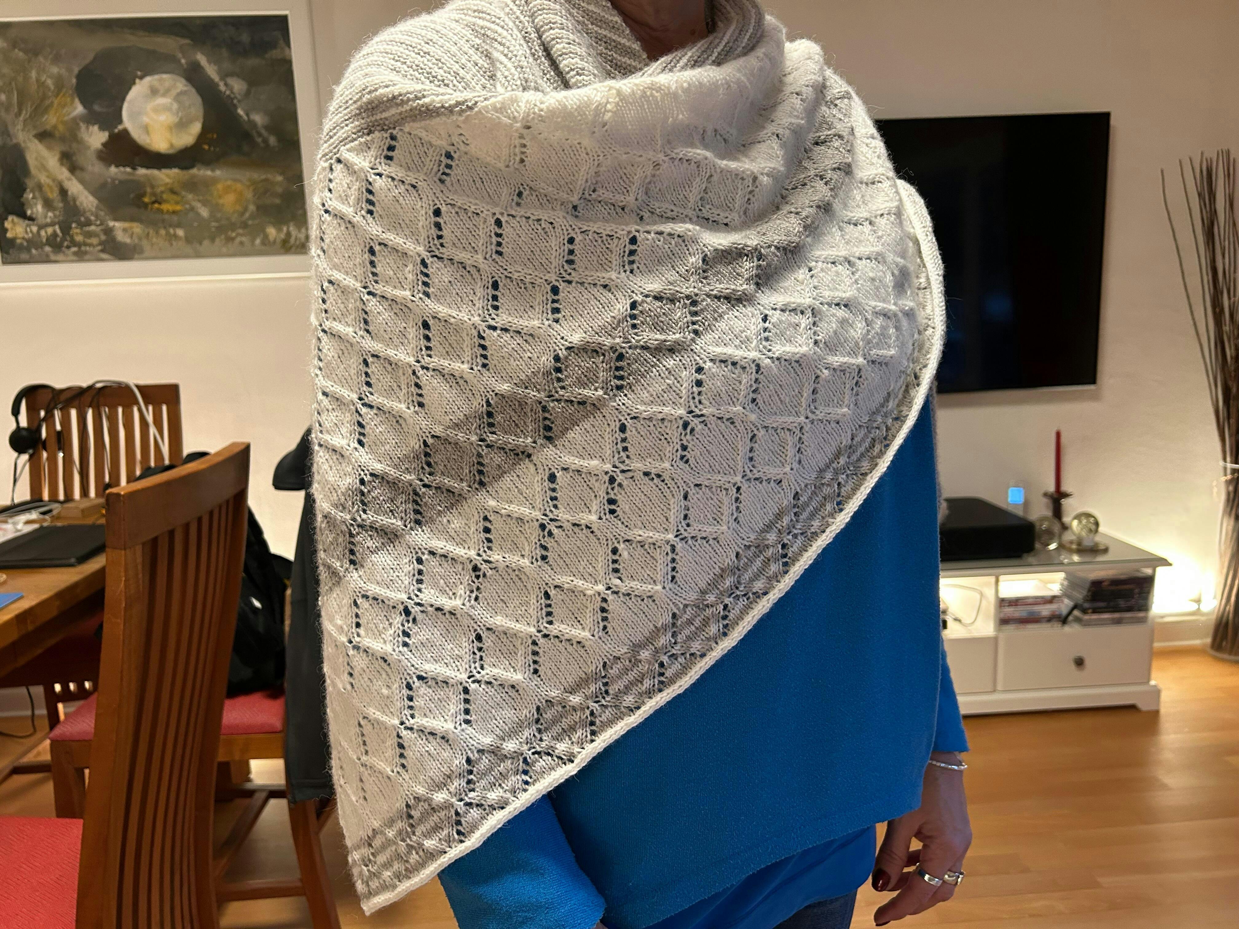 Ich habe das Tuch mit Begeisterung angefangen, zu stricken. Bis zu dem wunderschönen Muster ist auch alles easy. Aber dann🥹. Es benötigt - zumindest für mich - absolute Konzentration (und viele Nerven)… Habe es erstmal auf Seite gelegt und werde es an einem grauen Sonntagnachmittag weiterstricken ☺️. Freue mich, wenn es dann mal irgendwann fertig ist.