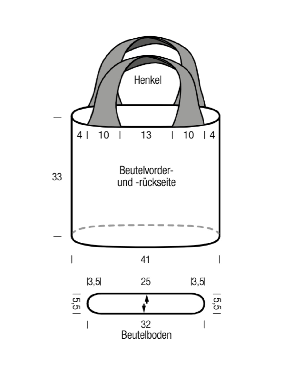 Boden ca. 32 x 5,5 cm, 33 cm hoch ab Bodenende [ohne Henkel], Umfang ca. 82 cm, Henkel ca. 50 cm lang