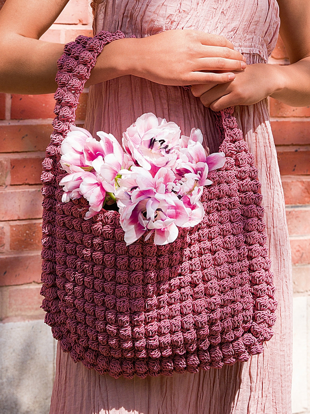 Gehäkelt wird sie mit The Core, einem Garn aus 50 % Baumwolle und 50 % Polyester. Die Tasche wird ca. 32 cm breit und ca. 17 cm hoch (ohne Henkel).