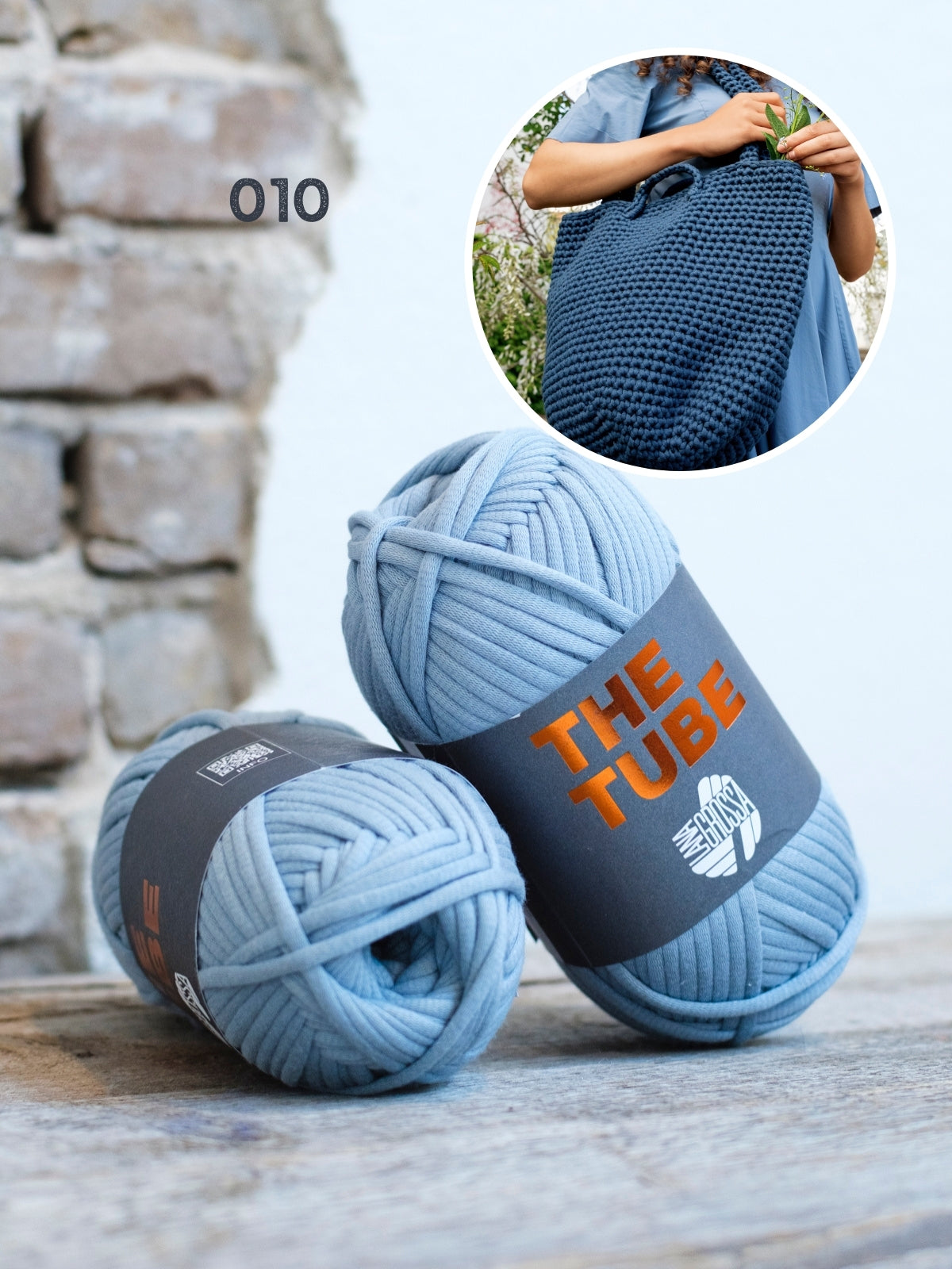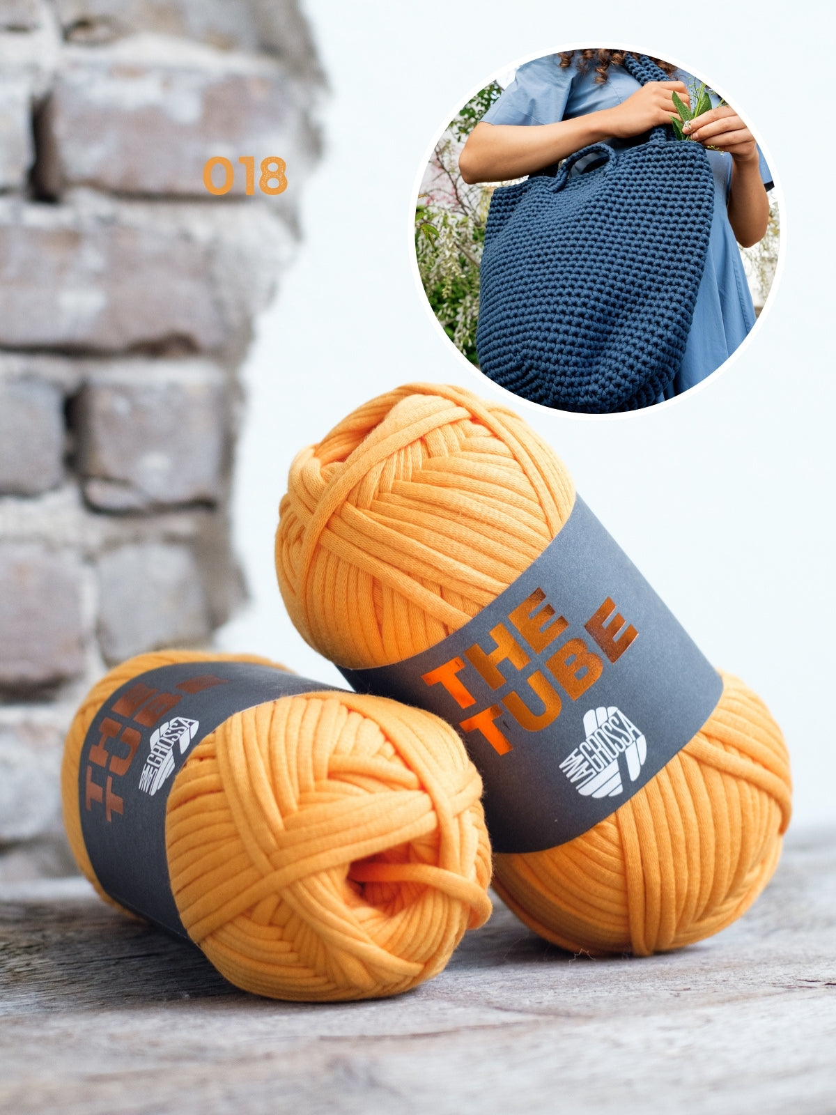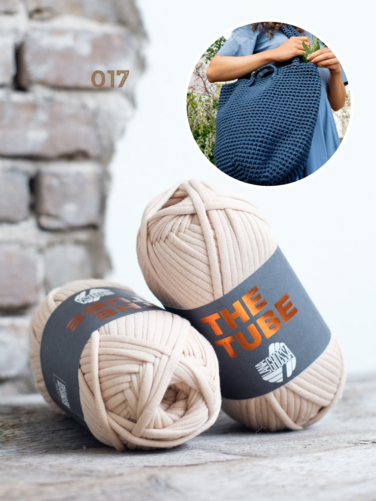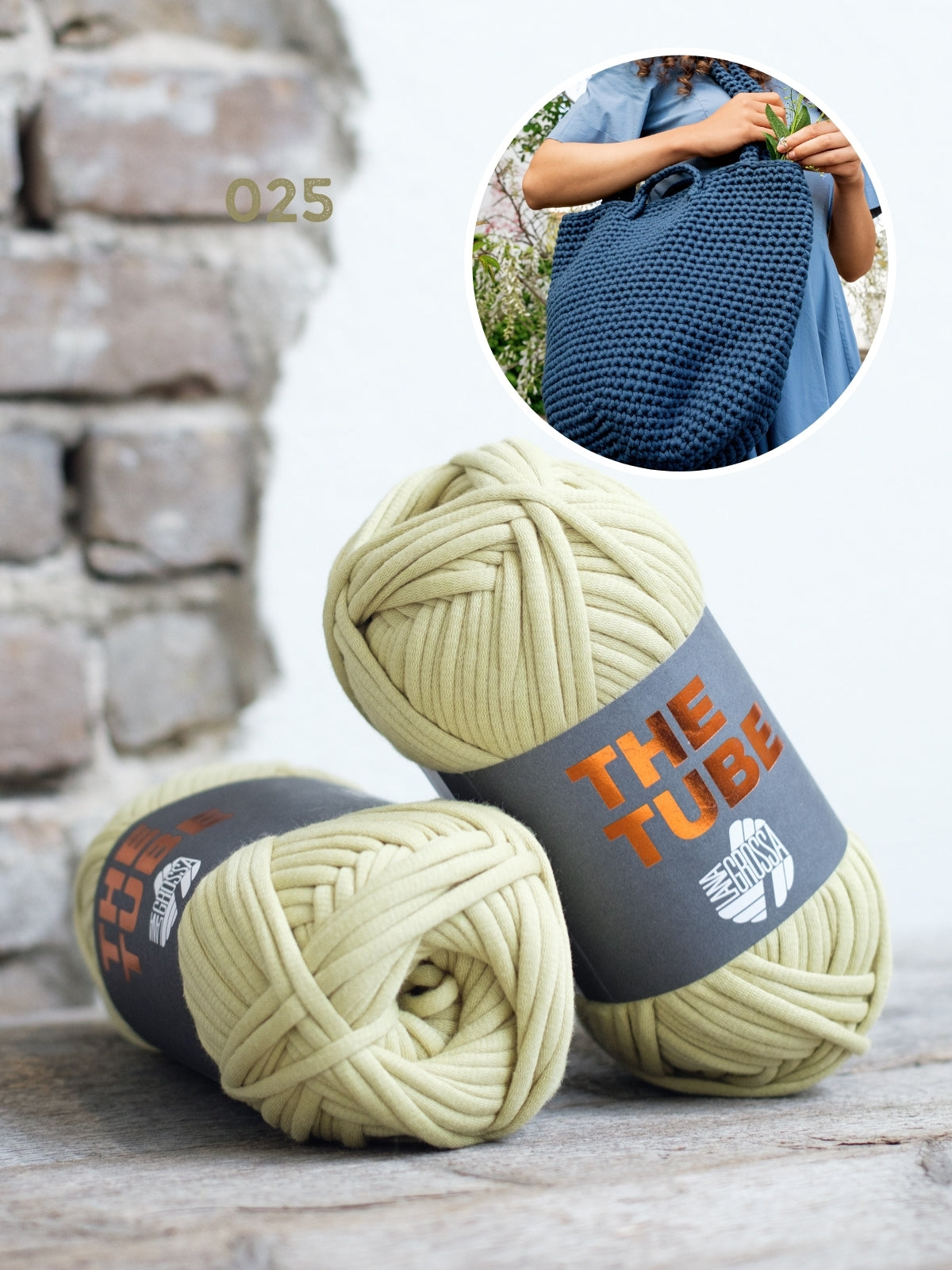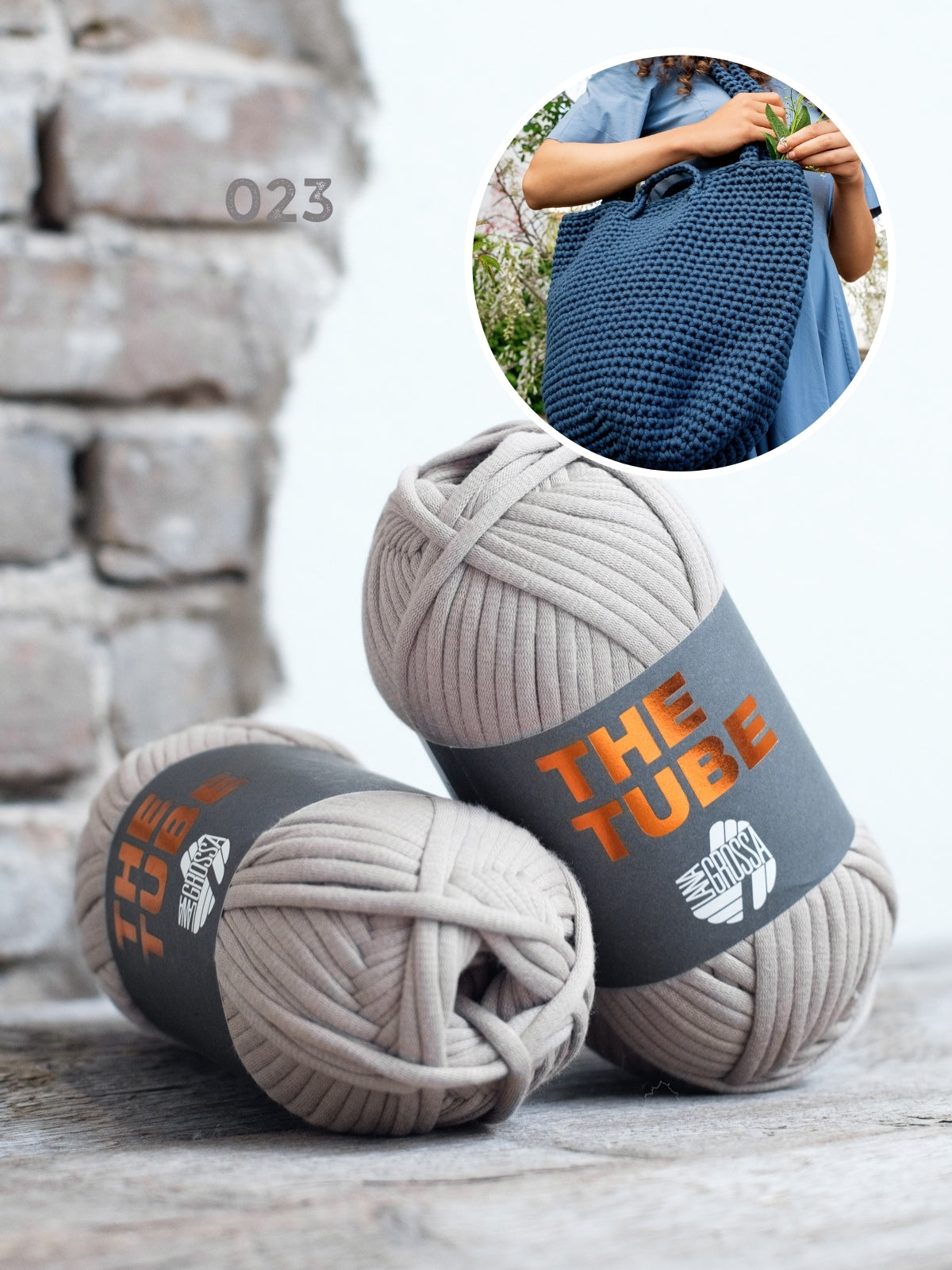 Das Paket besteht aus 3 Knäueln The Tube sowie dem Heft Bags No. 1 von Lana Grossa. Die benötigte Häkelnadel (7 mm oder 8 mm) kannst du unten in deinen Warenkorb legen.