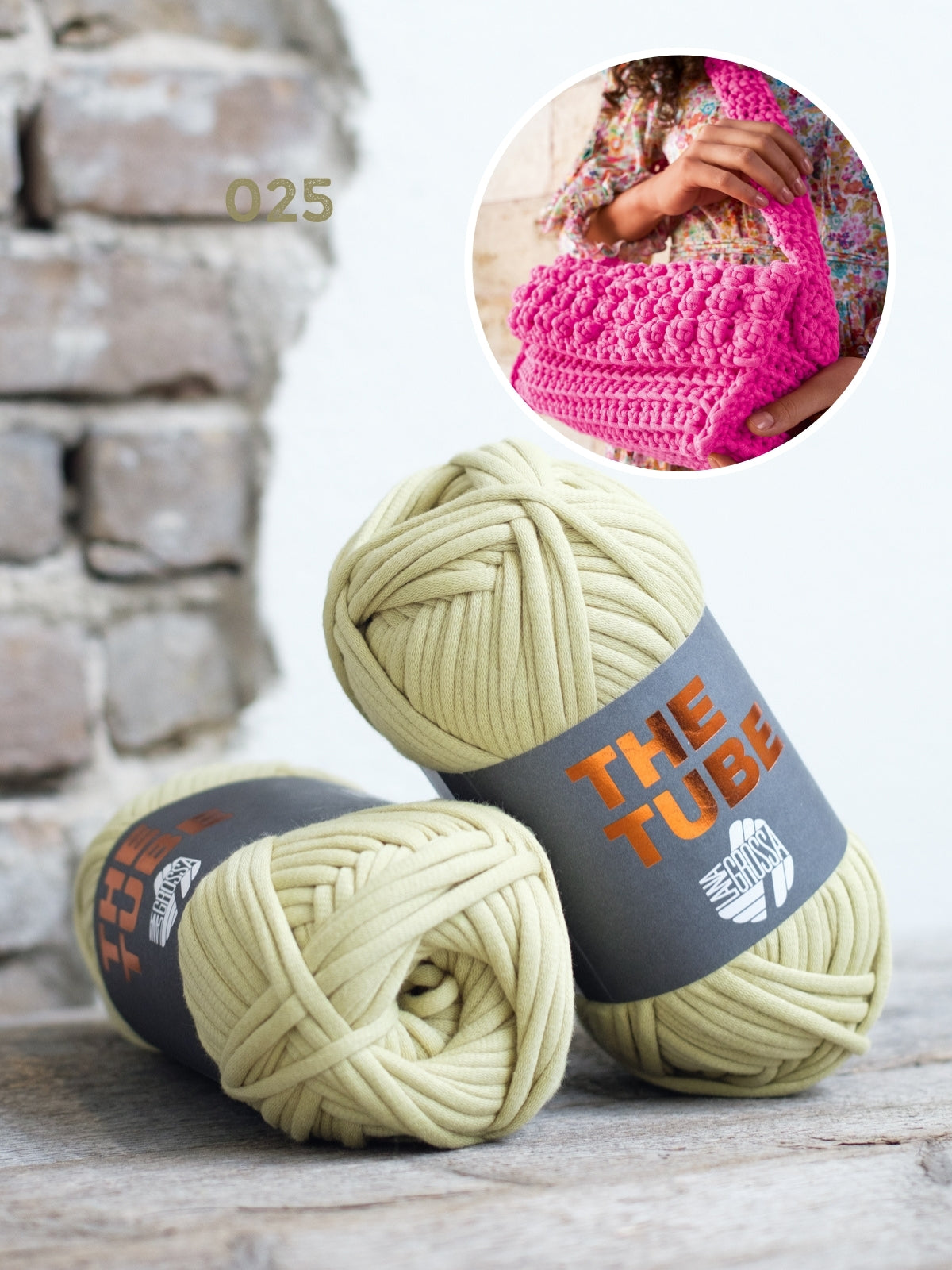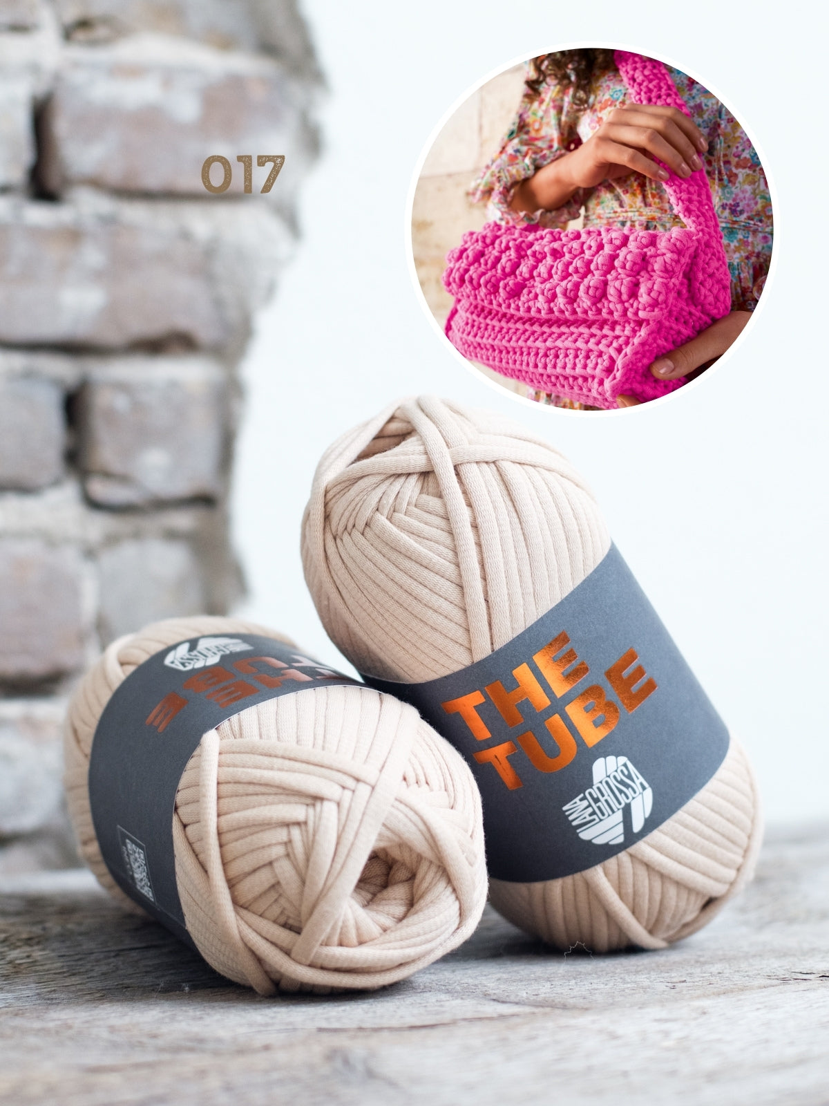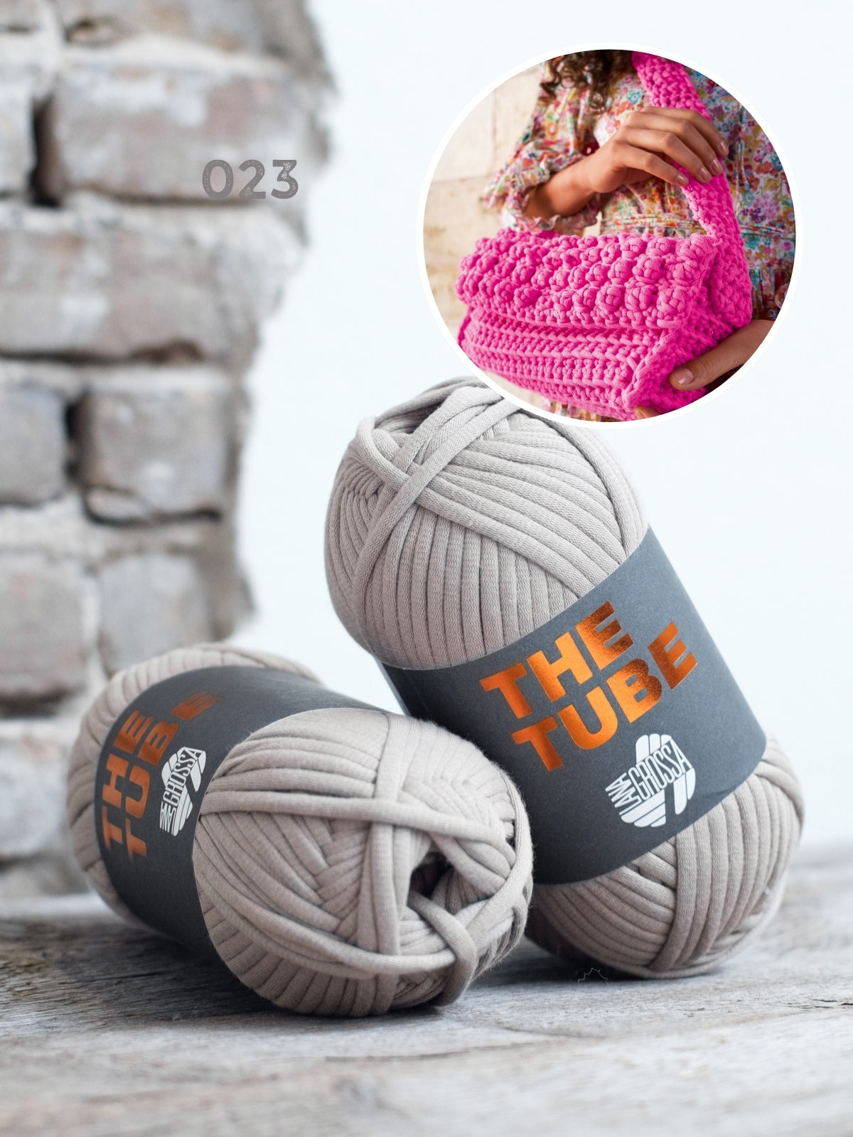 Das Paket besteht aus 2 Knäueln The Tube sowie dem Heft Bags No. 1 von Lana Grossa. Die benötigte Häkelnadel (7 mm oder 8 mm) kannst du unten in deinen Warenkorb legen.