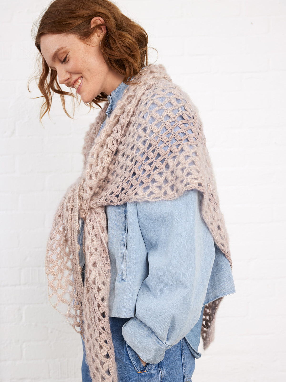 Dieses Dreieckstuch wird in einem wunderschönen Ajourmuster gehäkelt. Während des Häkelns wechseln Sie zwischen verschiedenen Garnen und verleihen dem Tuch mit Brillino einen dezenten Glitzereffekt!