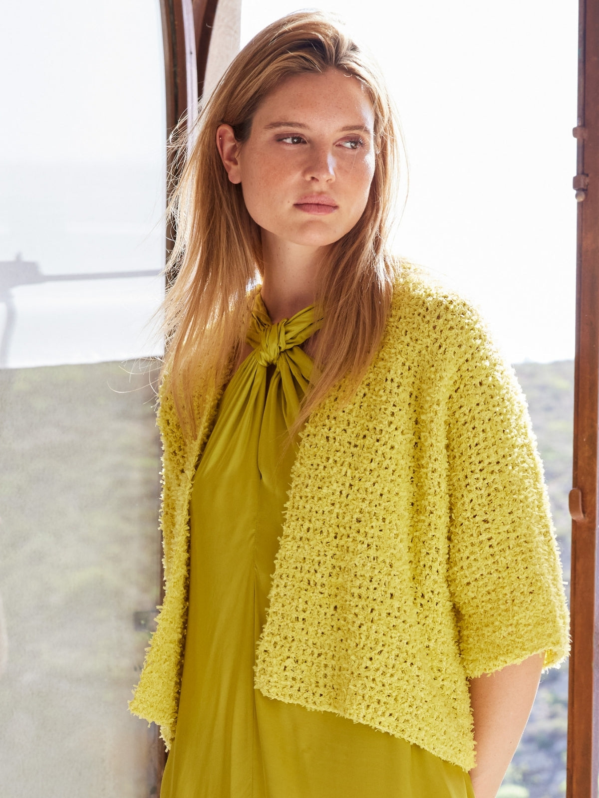 Diese Jacke hat breite, kurze Ärmel und einen kürzeren Körper. Ideal als leichter Überwurf im Sommer oder als stylisches Finish für Ihr Outfit.