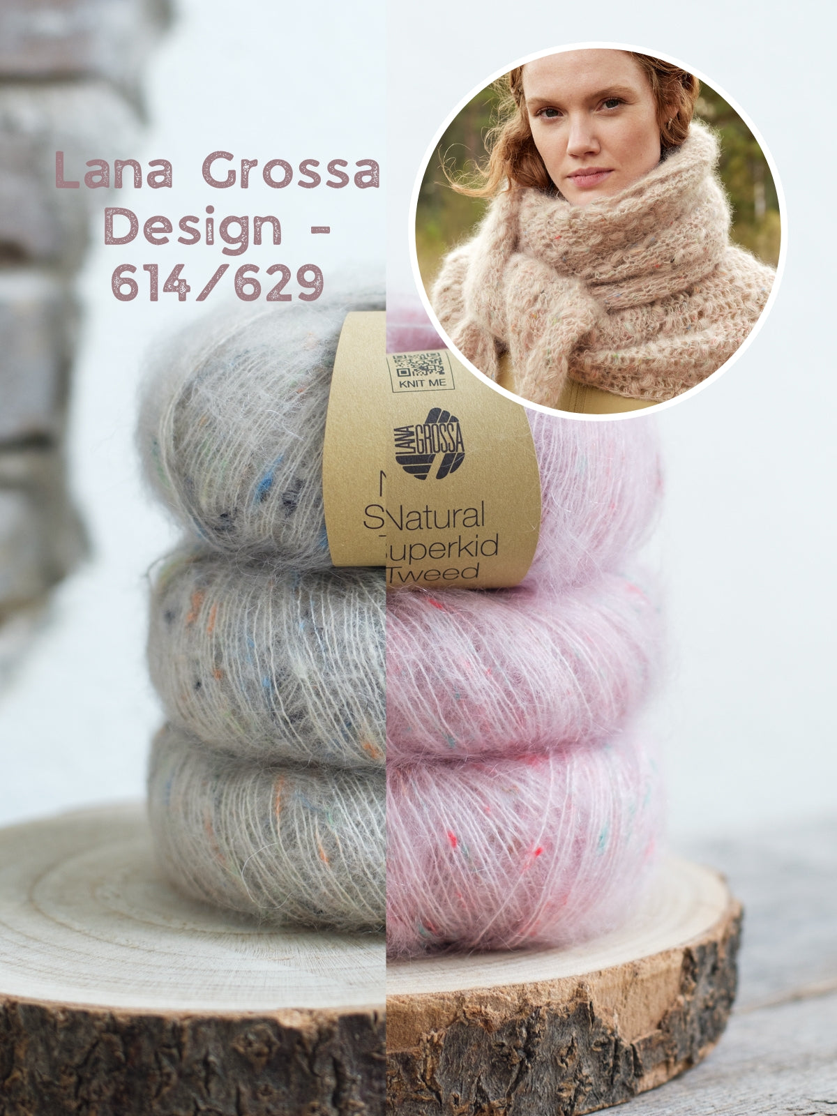Das Häkelpaket besteht aus 10n Knäuel Natural Superkid Tweed in 2 verschiedenen Farben und dem Heft Tücher & Co No. 9 von Lana Grossa. Die benötigte Häkelnadel (5,5 mm) können Sie direkt hier in Ihren Warenkorb legen.