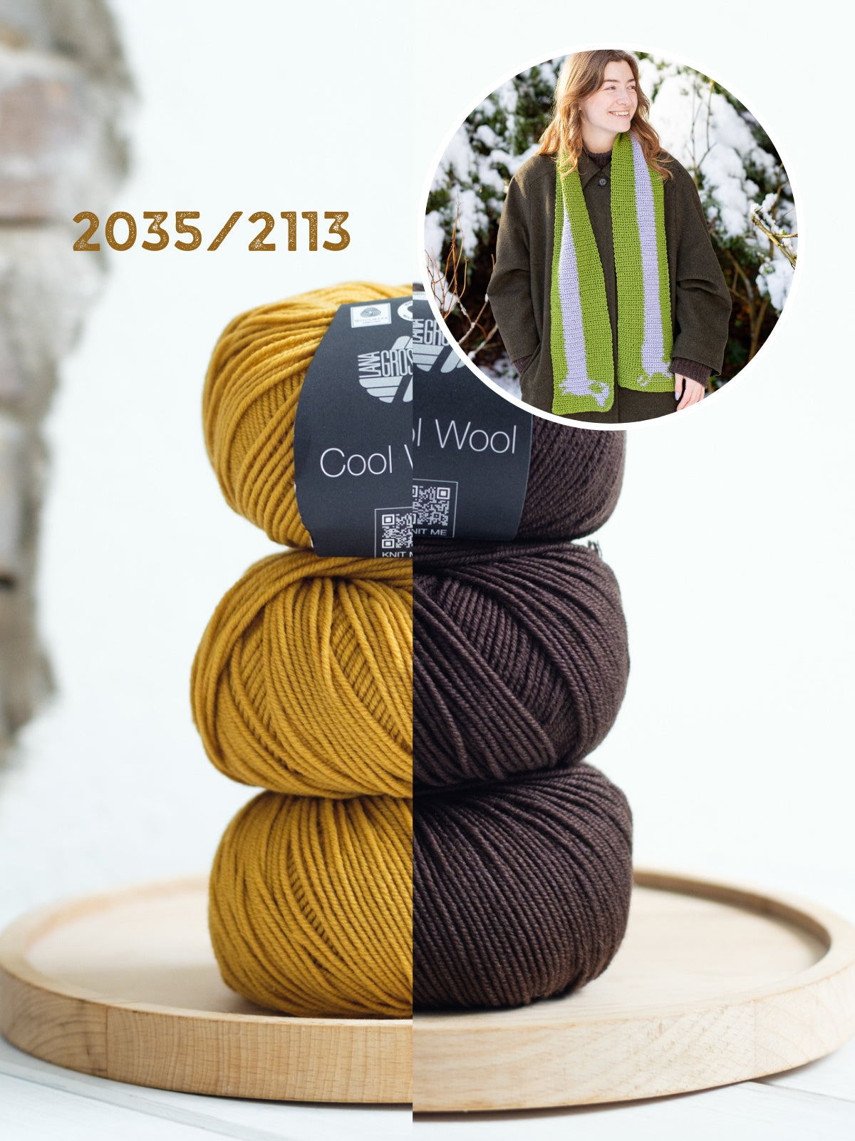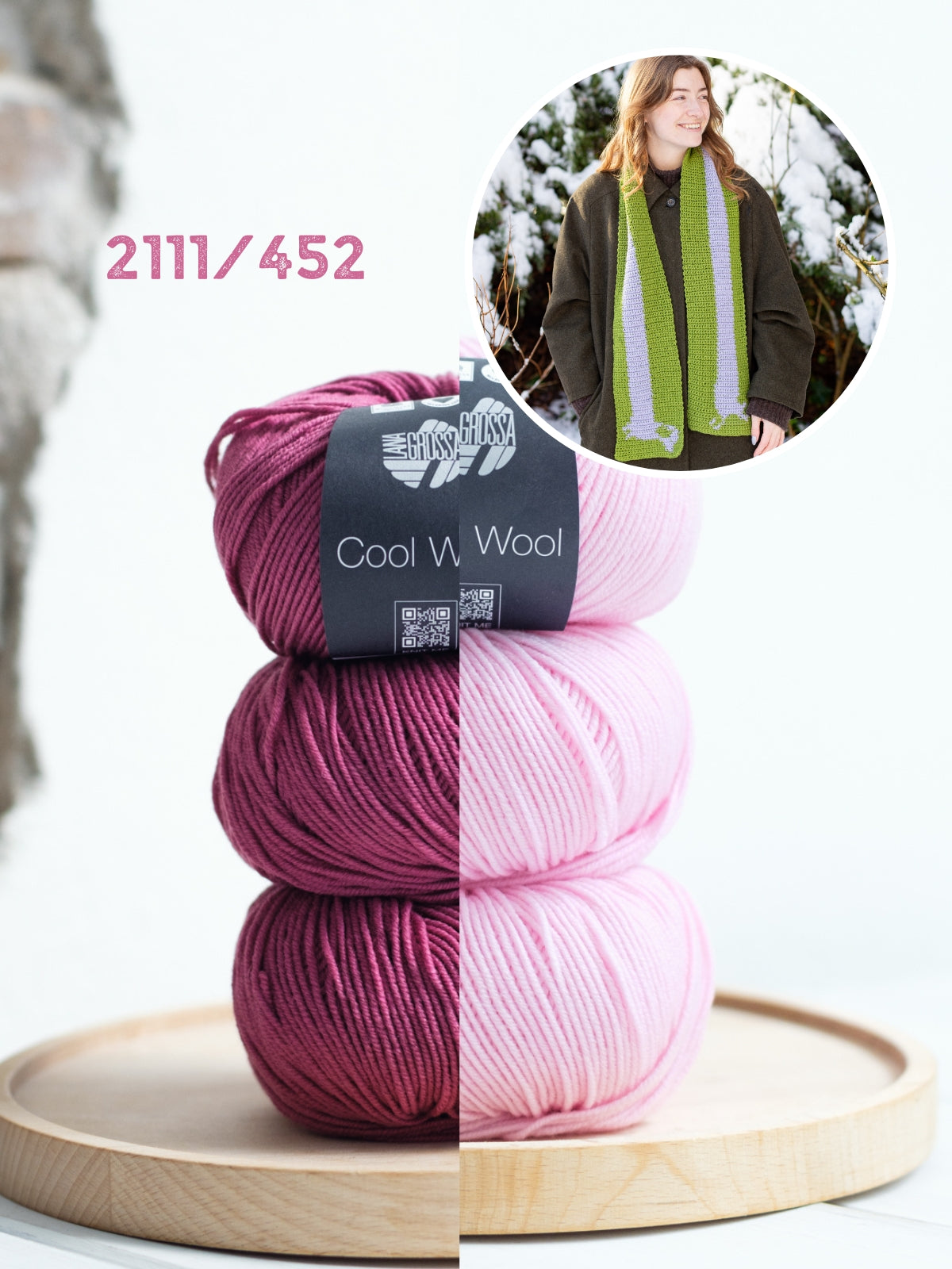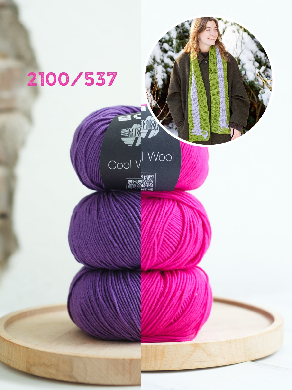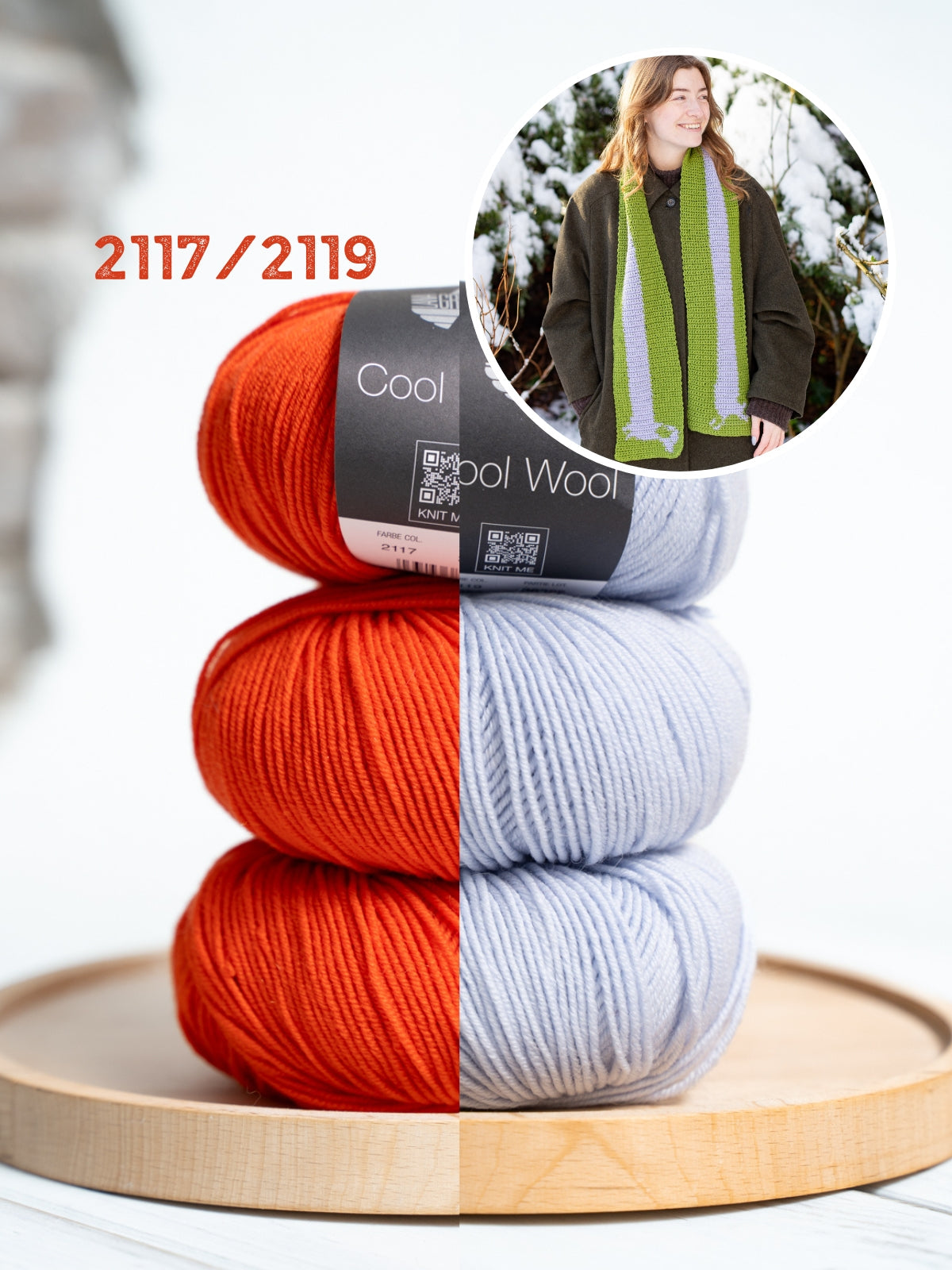 Das Häkelpaket besteht aus 3 Knäueln Cool Wool in zwei verschiedenen Farben sowie der englischsprachige Häkelanleitung. Die benötigte Häkelnadel mit 3,5 mm können Sie weiter unten Ihrem Warenkorb hinzufügen.