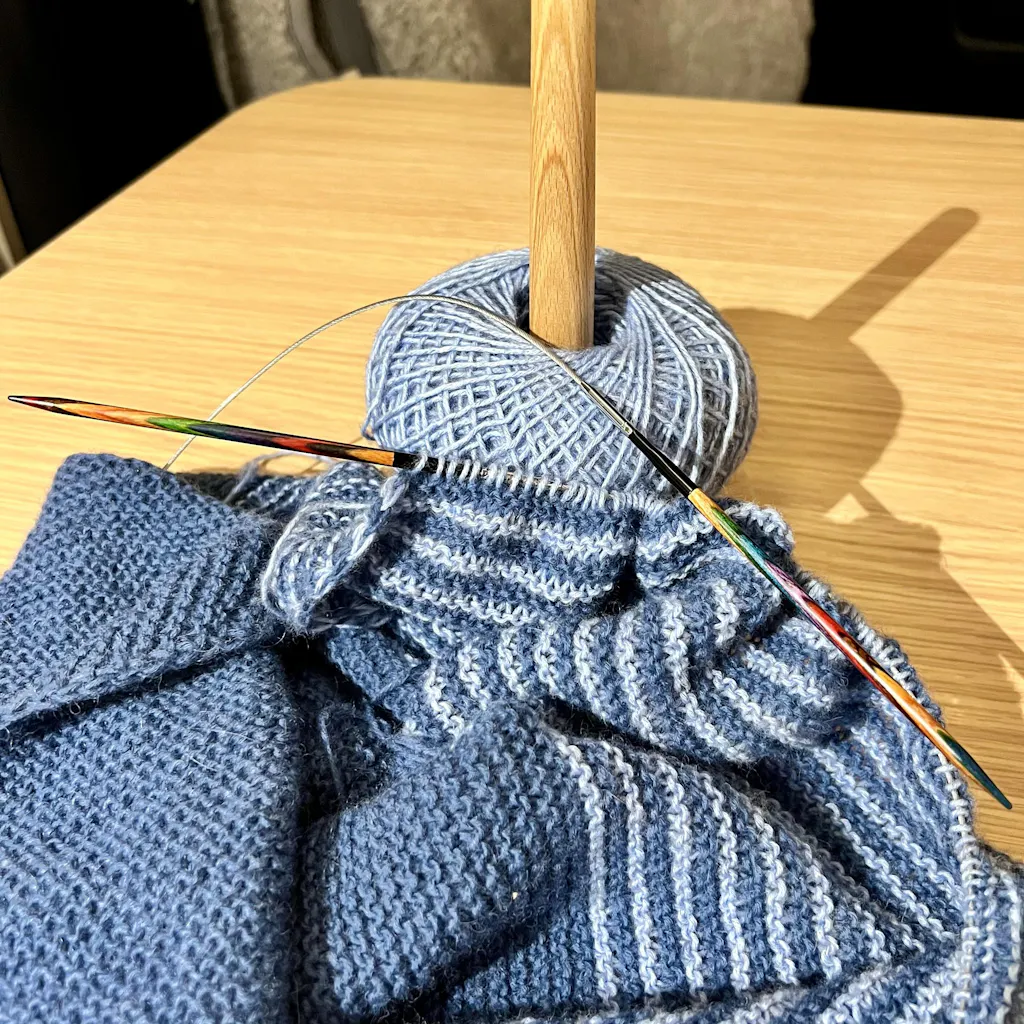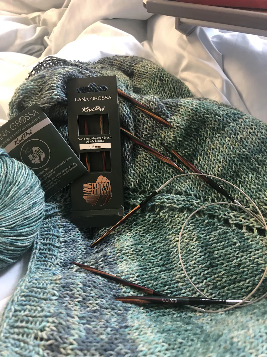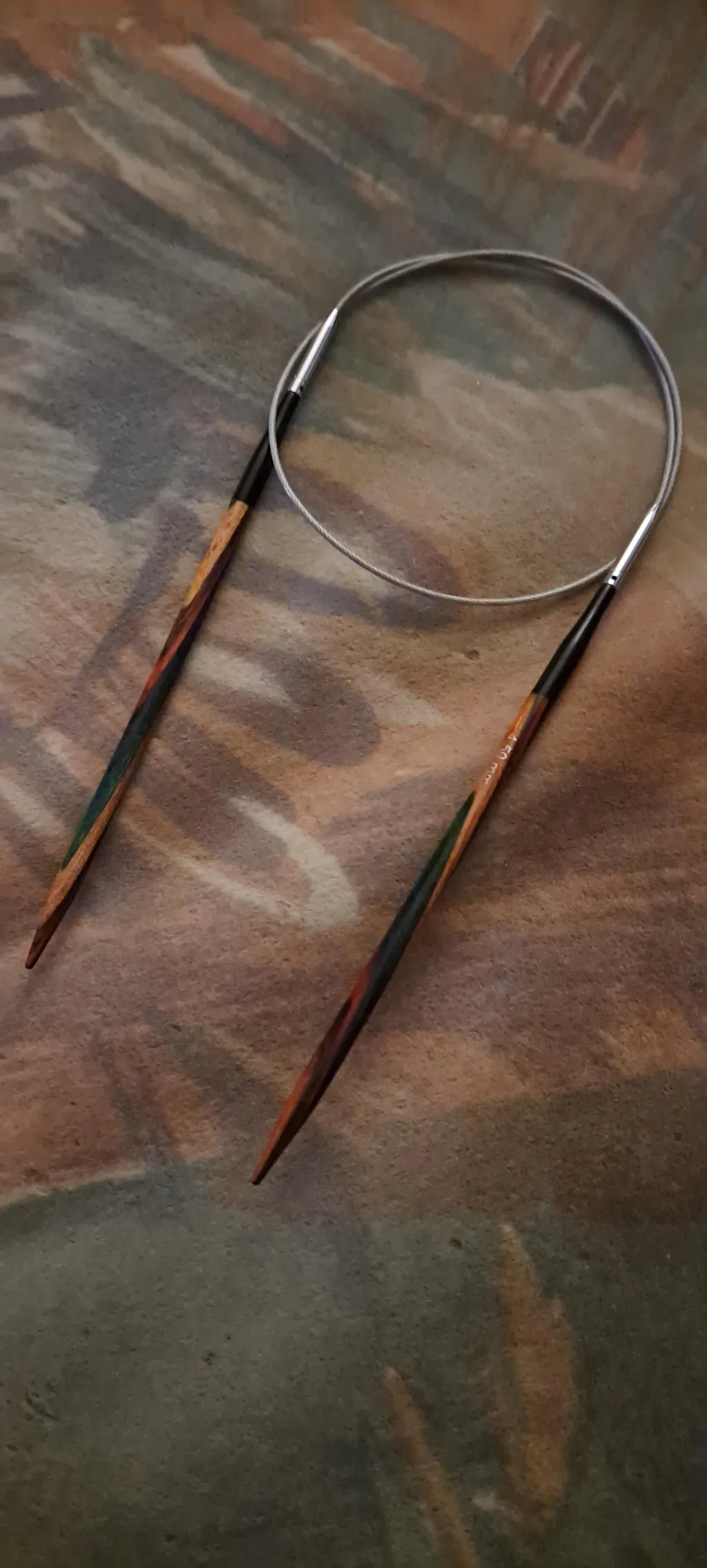 Nadelspitzen aus Designerholz von Lana Grossa. Diese Nadeln sind mit dem KnitPro-System mit Faden austauschbar.