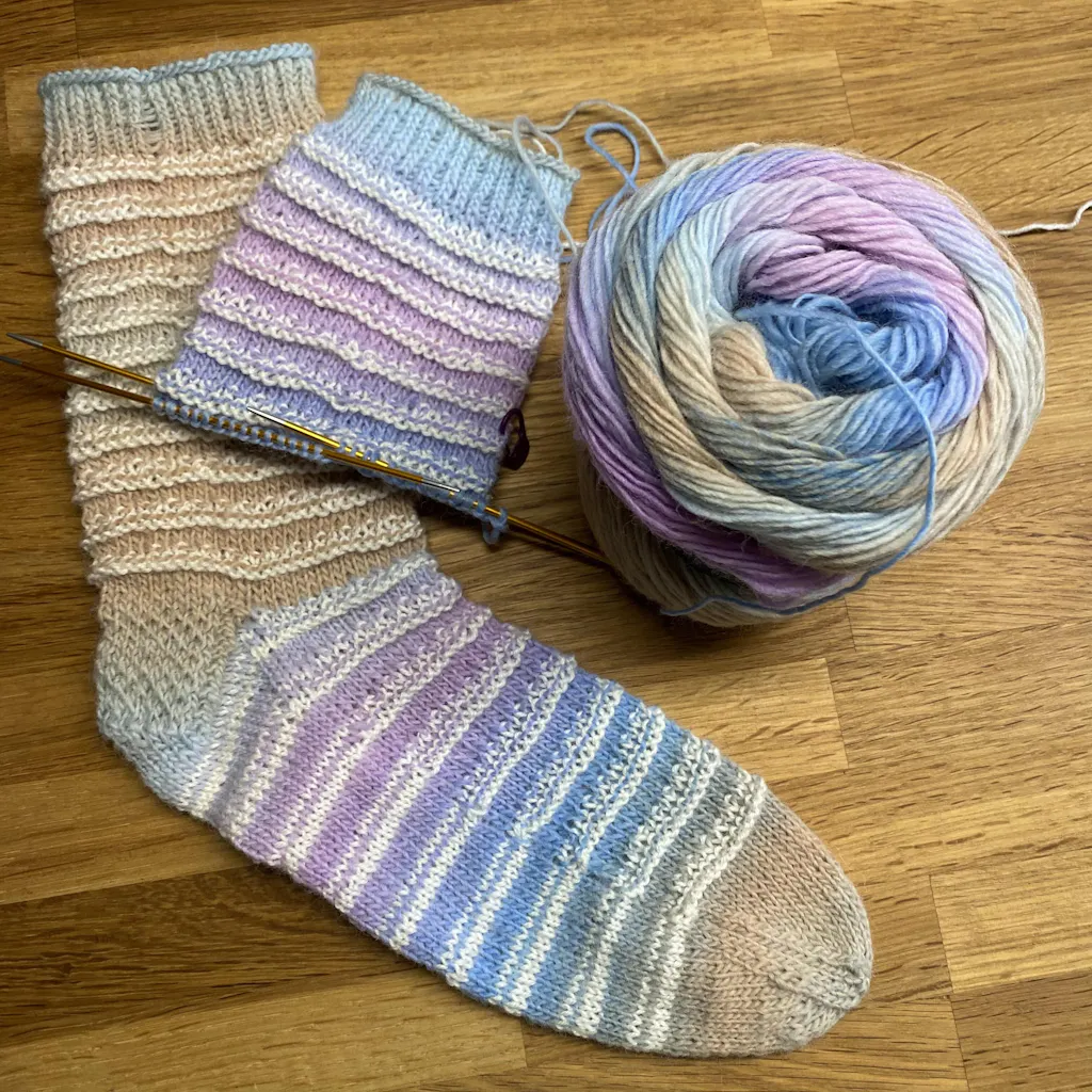 Sockengarn aus Wolle kombiniert mit Polyamid. Ein Knäuel dieser schönen Wolle reicht für ein Paar Socken (bis Größe 46).