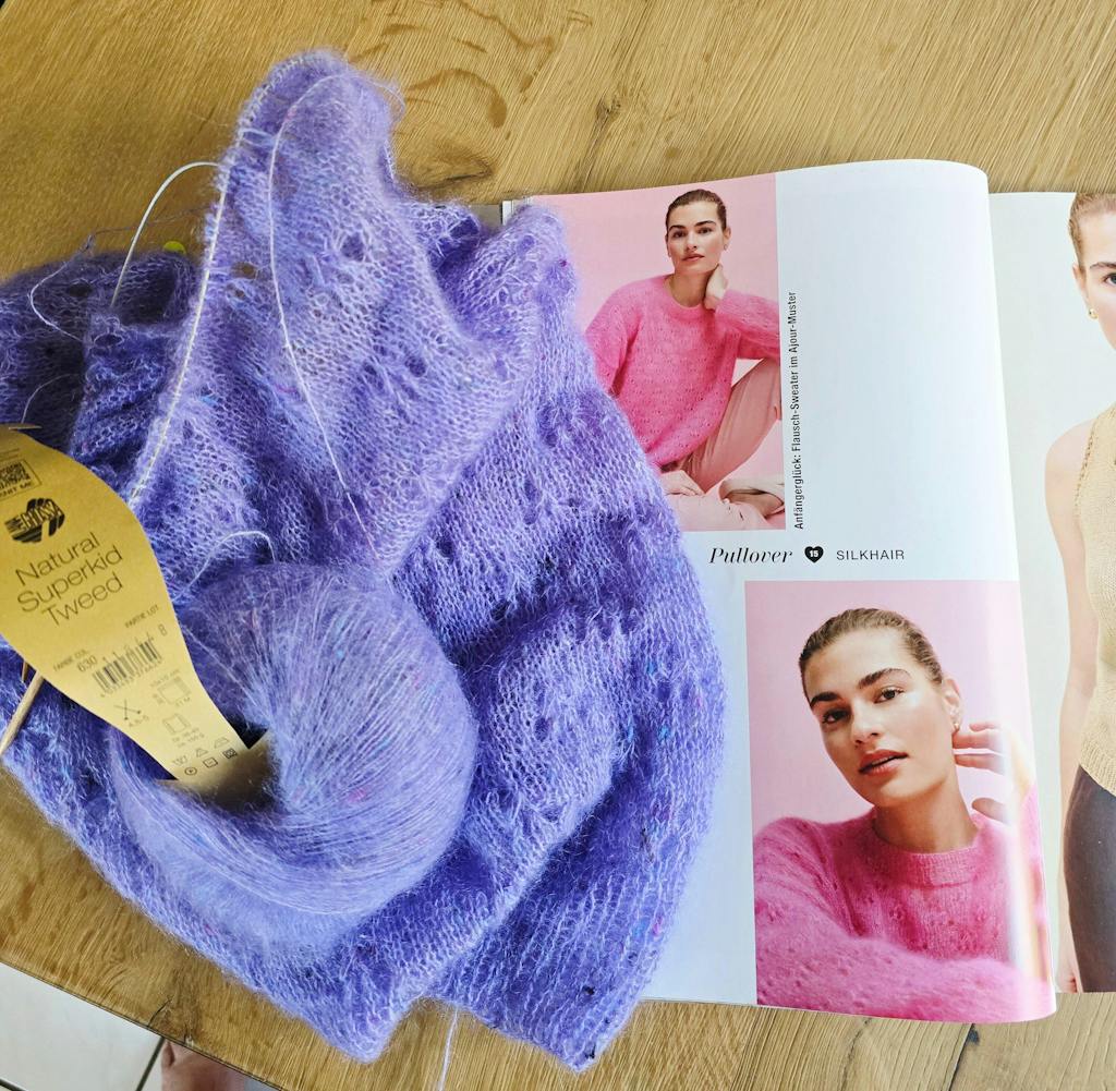 Der Natural Superkid Tweed von Lana Grossa ist ein luxuriöser Faden unter anderem aus Mohair und Seide mit einem schönen Tweed-Effekt.