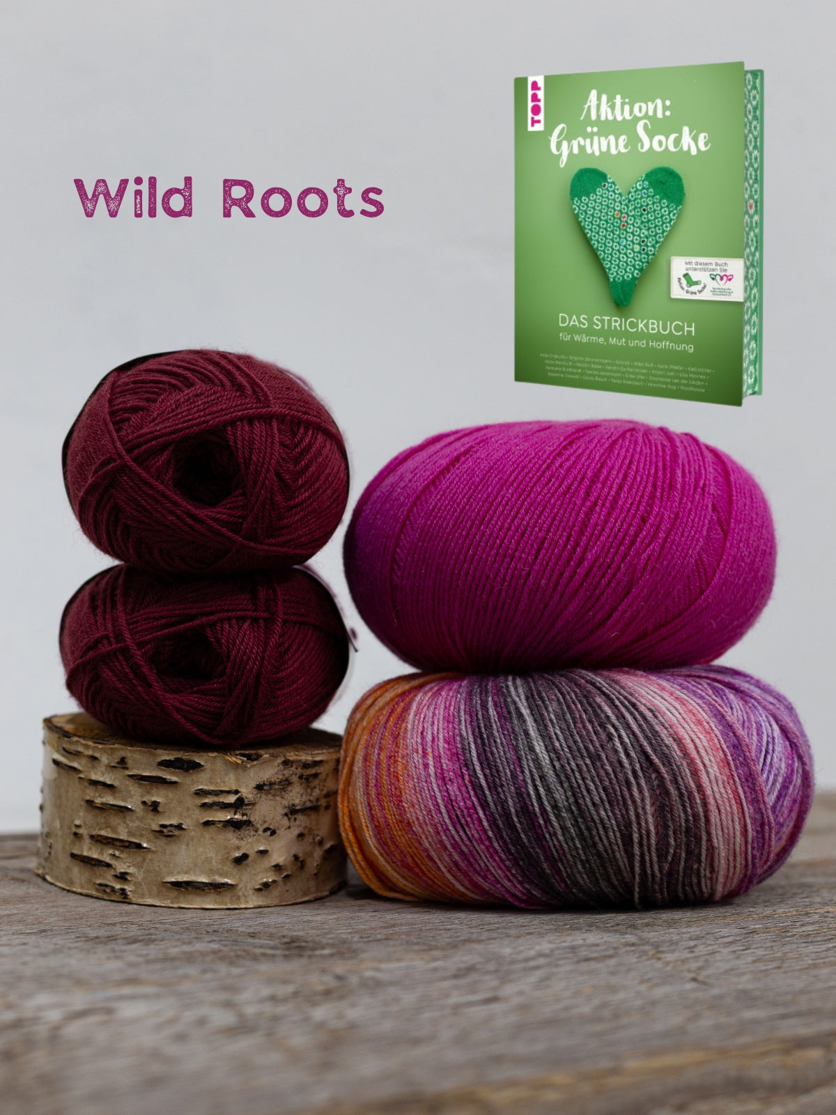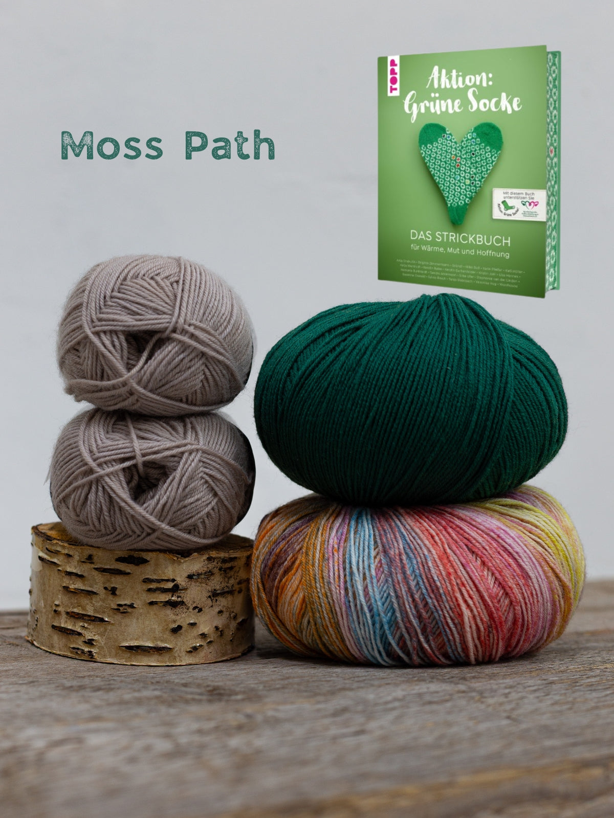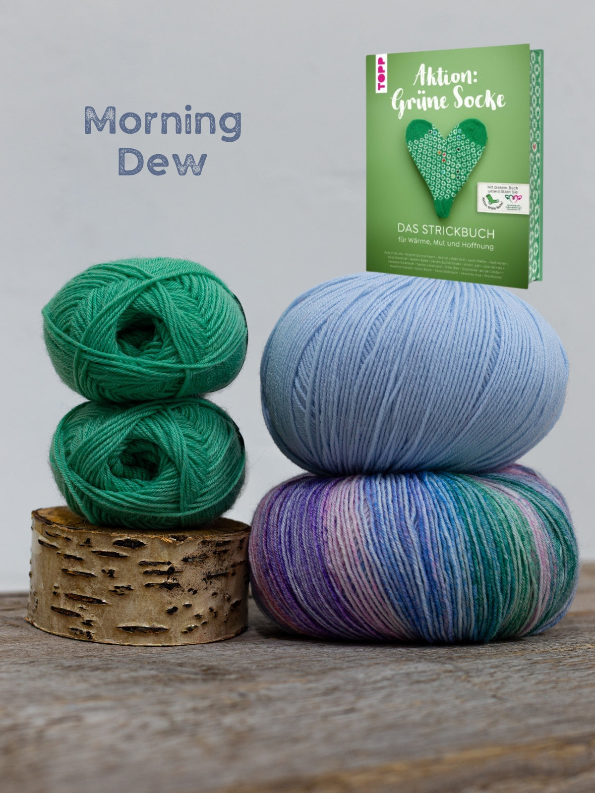 Das Paket besteht insgesamt aus 4 Knäueln Sockenwolle und dem Buch „Aktion: Grüne Socke”. Die benötigten Stricknadeln (2 mm, 2,5 mm oder 3 mm) können Sie unten direkt in Ihren Warenkorb legen.