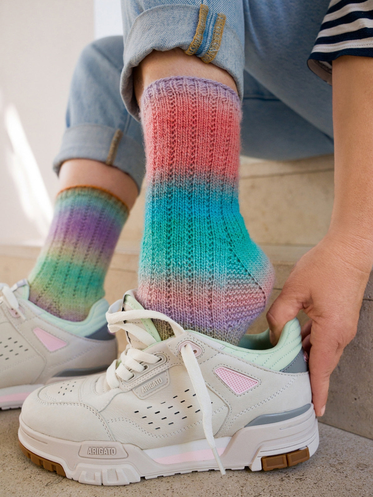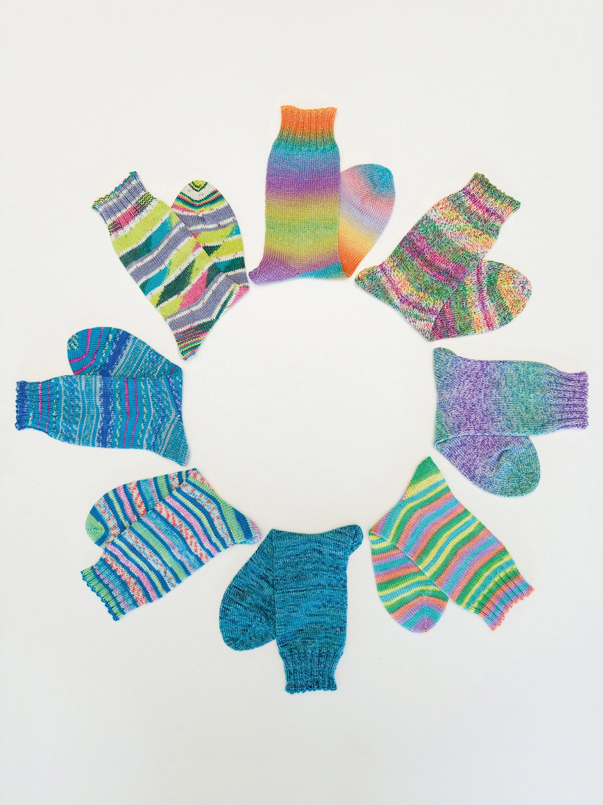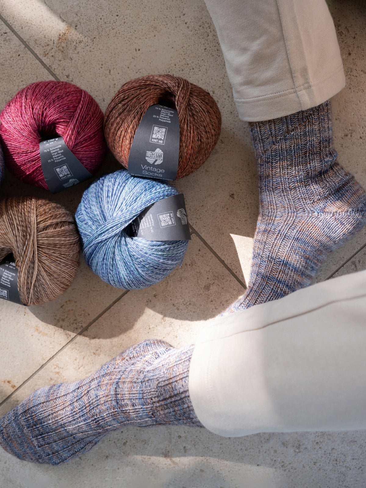 Mit den ersten kalten Tagen beginnt offiziell die warme-Socken-Saison! Mit diesem Paket können Sie mindestens vier Paar Socken stricken – außerdem ist ein Magazin mit verschiedenen tollen Sockenanleitungen enthalten.