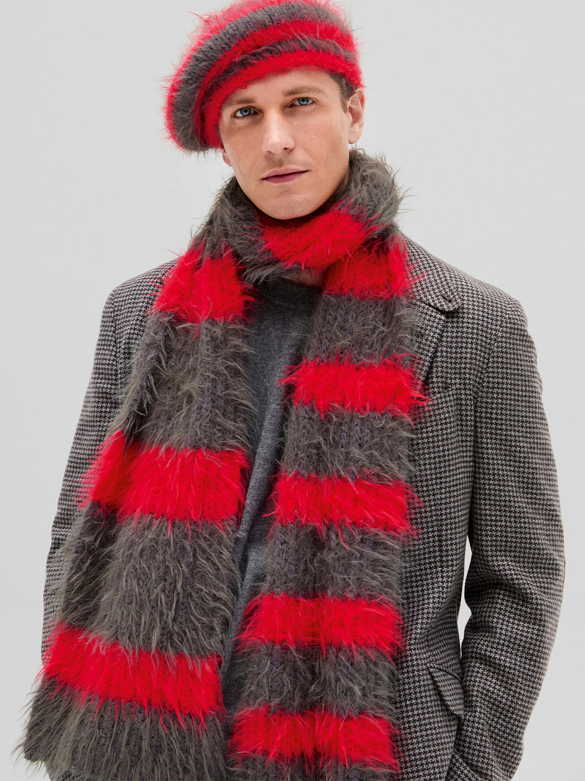 Kuscheln Sie sich in diese fröhliche Setkombination aus Schal und Baskenmütze! Die kräftigen Farben sorgen für gute Laune an kalten Tagen.