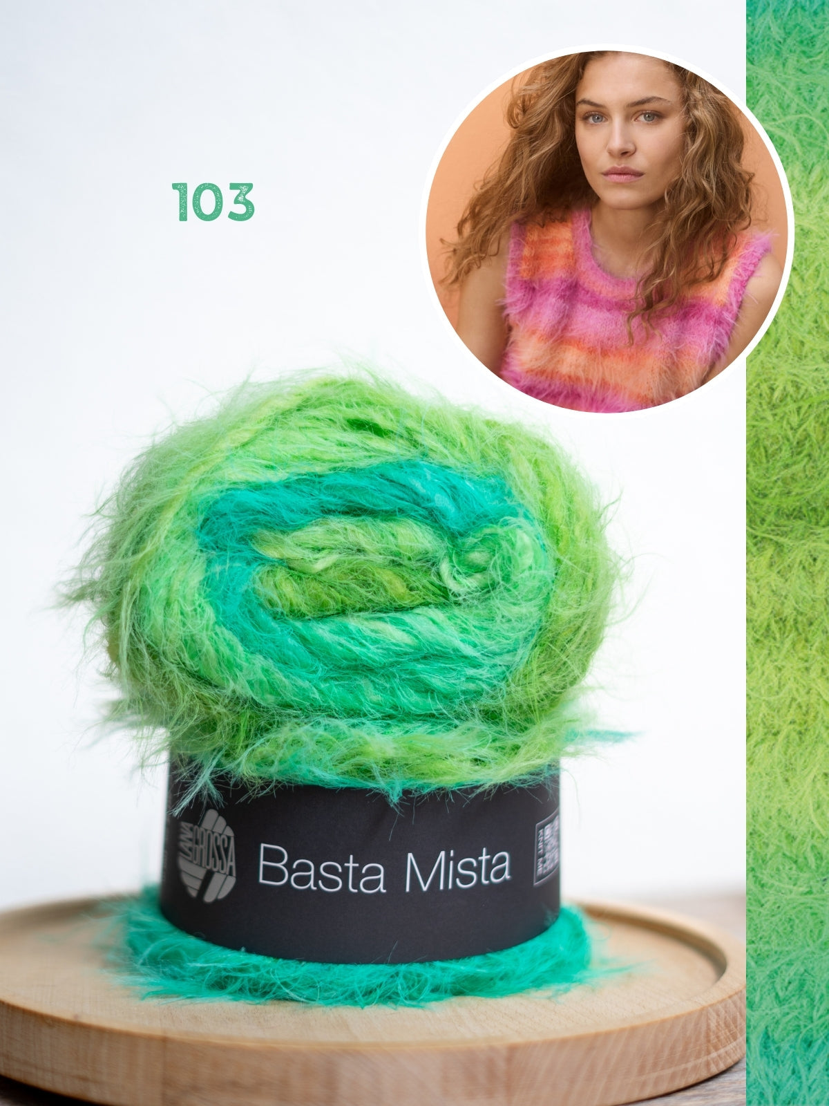 Material: Lana Grossa-Qualität „Basta Mista“ (50% Schurwolle (Merino), 50% Polyamid, LL = ca 100 m/50 g): 250 (250 - 300 - 300) g Grüngrau/Graublau/Hellpetrol/Grau/Hellgrün (Fb 115) oder 250 (250 - 300 - 300) g Pfirsich/Apricot/Orange/Rosa/Pink/Fuchsia (Fb 111) oder 250 (250 - 300 - 300) g Creme/Vanille/Limette/Graugrün/Rosa/Flieder/Lavendel (Fb 112); Rundstricknadeln Nr 4 und Nr 6; 1 kurze Rundstricknadel Nr 4.