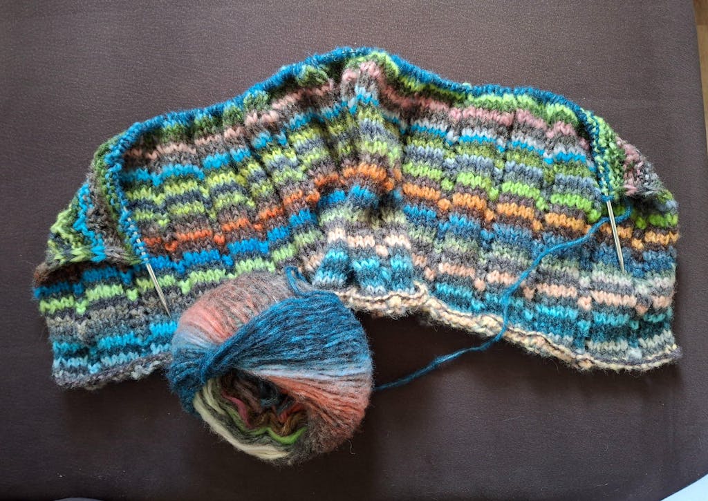 Cloudy_7th Tolle Wolle, Farbe is dezent bunt und das Muster ist schnell verstanden und gestrickt …bin noch beim zweiten Ballen aber man kann den Flausch bereits erahnen