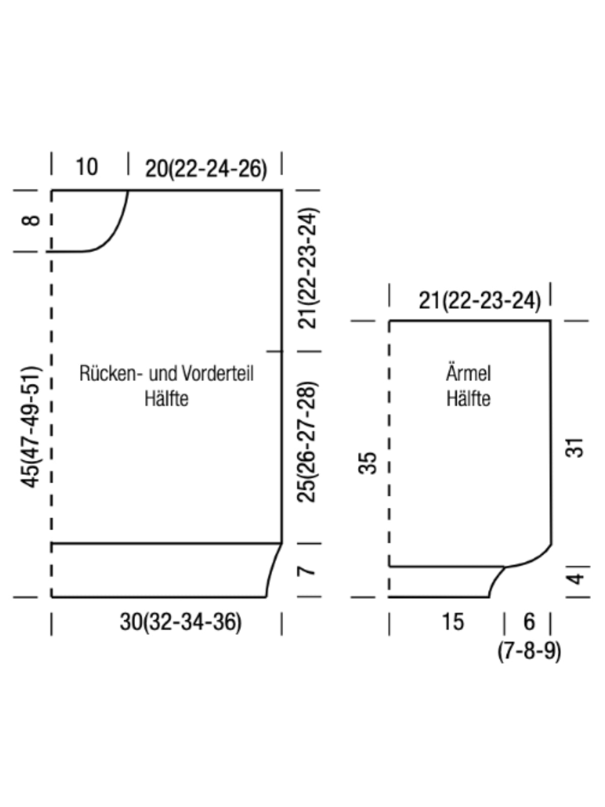 Dieser klassische Pullover wird im Halbpatentmuster gestrickt, was ihm eine zeitlose Struktur verleiht. Der Pullover wird in einzelnen Teilen gestrickt, die anschließend zusammengenäht werden. Der Halsausschnitt wird zum Schluss mit einer Rundstricknadel angestrickt.