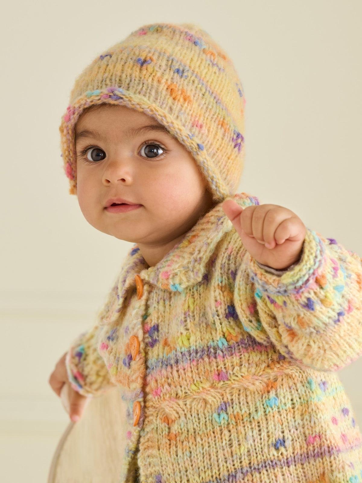 Mit diesem Paket müssen Sie sich erst entscheiden, welches Modell Sie stricken möchten, wenn Sie bereit sind, anzuschlagen! Das Paket enthält genügend Garn, um für Größe 50/56 eine Strickjacke, einen Pullover und eine Mütze zu stricken, oder für Größe 62 bis 92 eine Strickjacke und einen Pullover zu stricken, oder für Größe 98/104 eine Strickjacke + Mütze oder den Pullover + Mütze zu stricken.