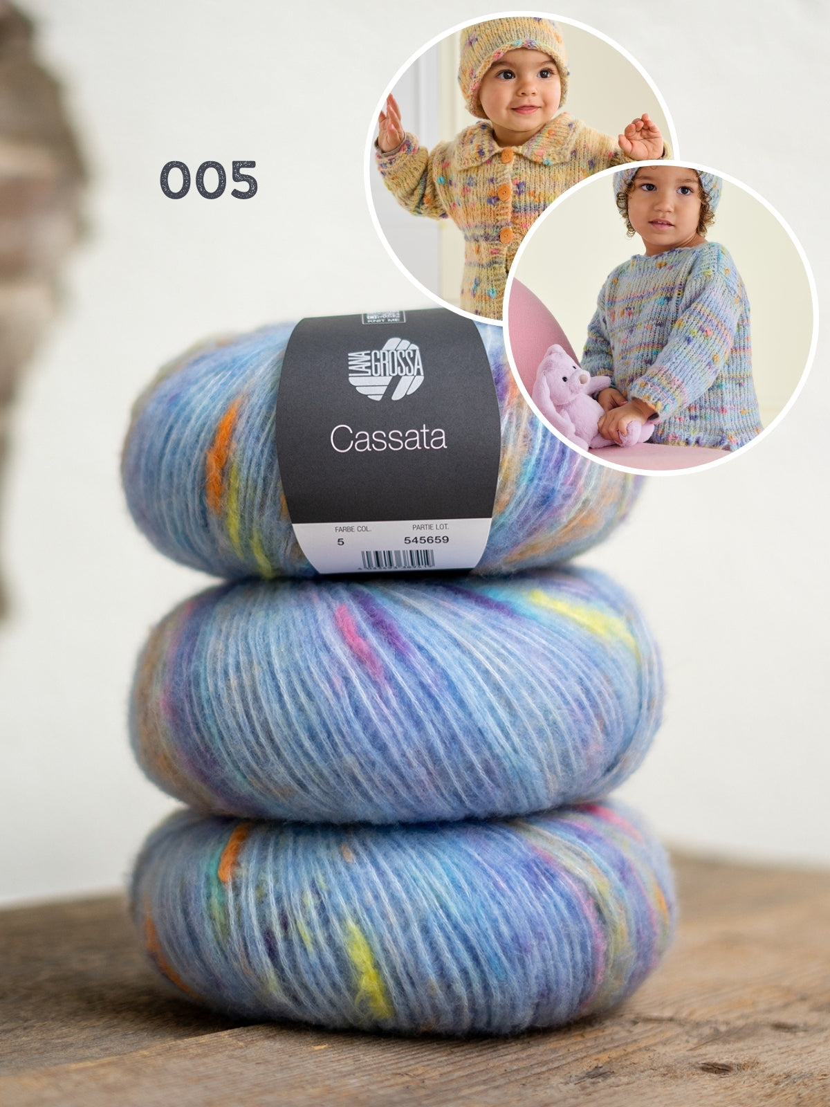 Das Strickpaket enthält die unten aufgeführten Garne sowie das Infanti 22 Magazin von Lana Grossa. Die benötigten Nadeln können Sie gleich hier in Ihren Warenkorb legen.