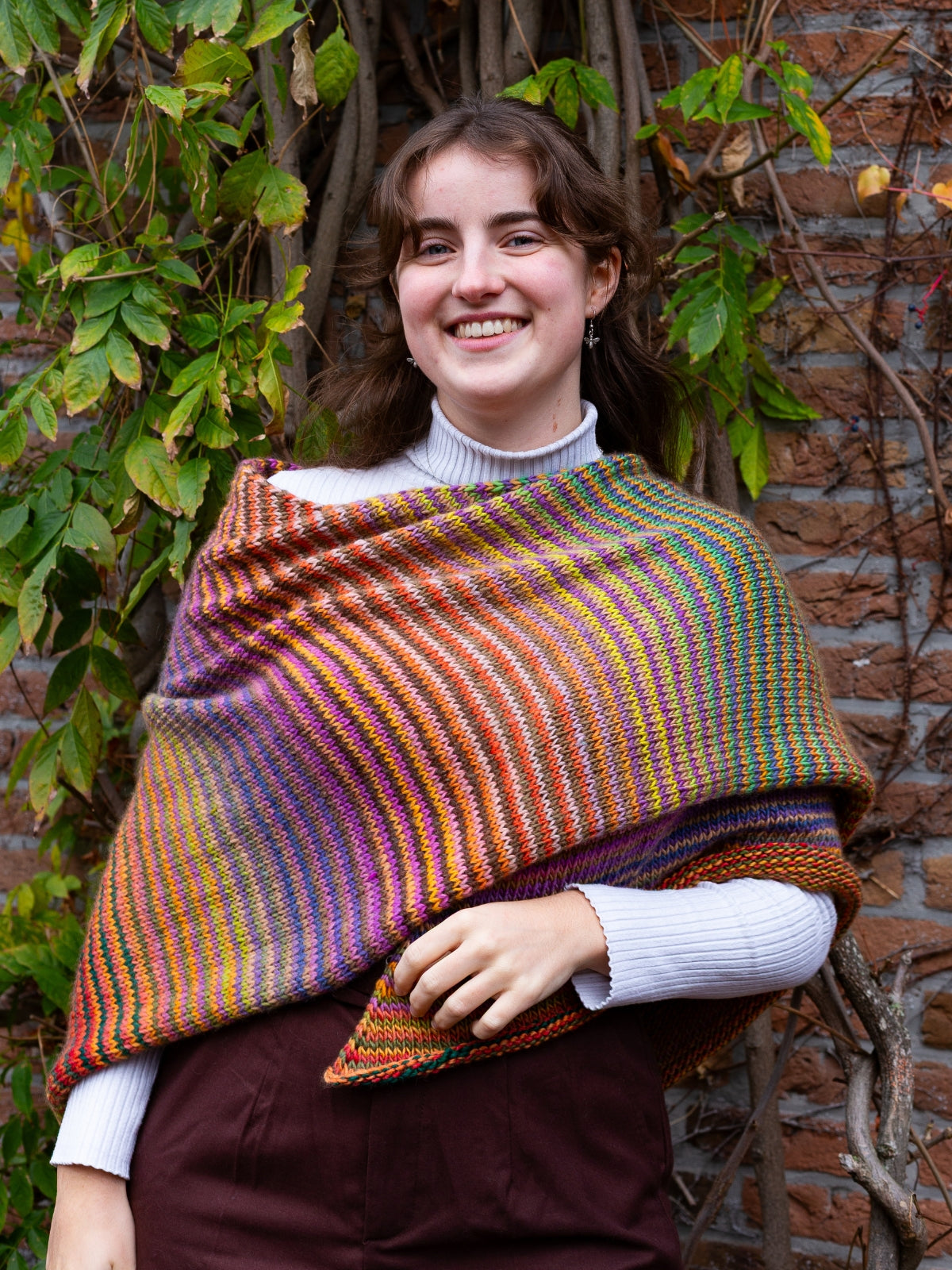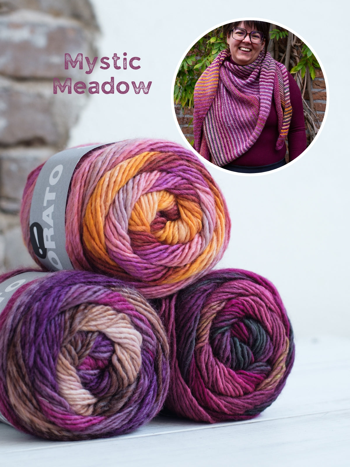 Die fröhlichen Colorato-Knäuel schrien geradezu danach, zu einer wunderschönen Tuch verarbeitet zu werden! Sie kombinieren drei verschiedene Farben dieses schönen Farbverlaufsgarns, wodurch eine einzigartige Tuch entsteht.