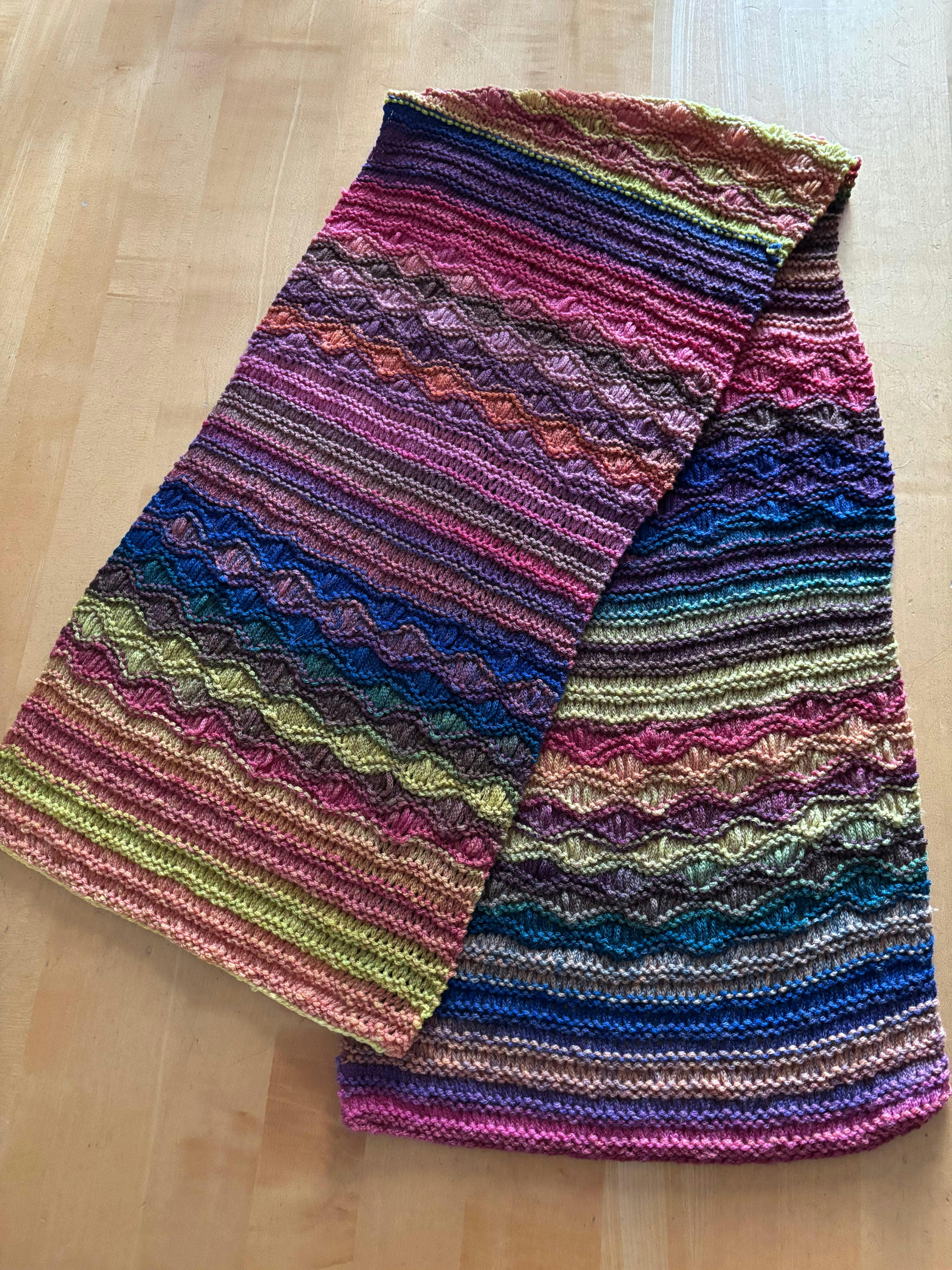Obwohl ich den Schal nach meiner Idee stricke, bin ich begeistert vom Farbenspiel...