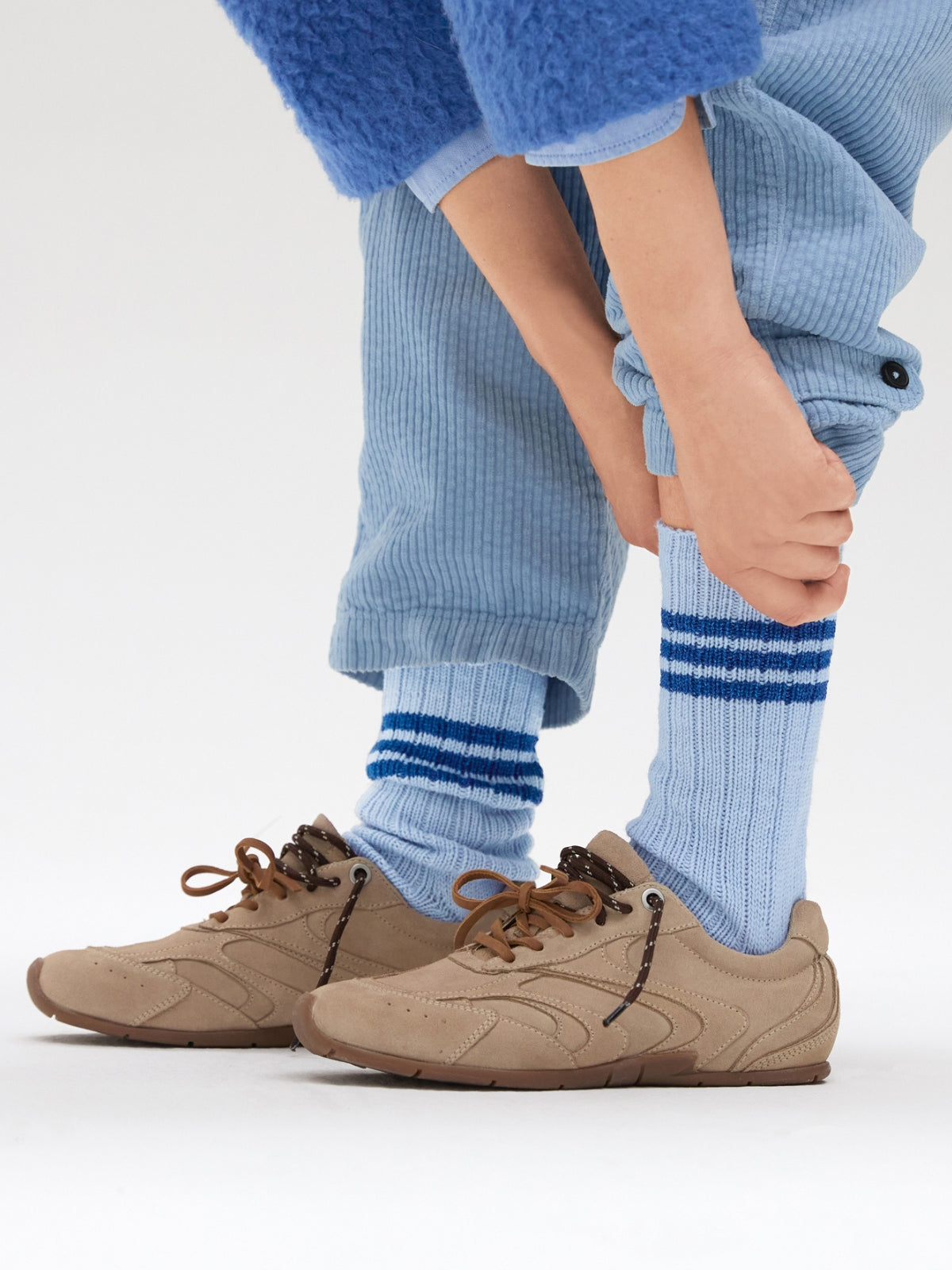 Die Socken werden mit Meilenweit 50 Cashmere (70 % Wolle, 25 % Polyamid, 5 % Kaschmir) und Brillino (83 % Viskose, 17 % Lurex) oder Cosmo (100 % Baumwolle mit Pailletten) gestrickt. Die Anleitungen sind in den Größen 36 bis 43 ausgeschrieben.