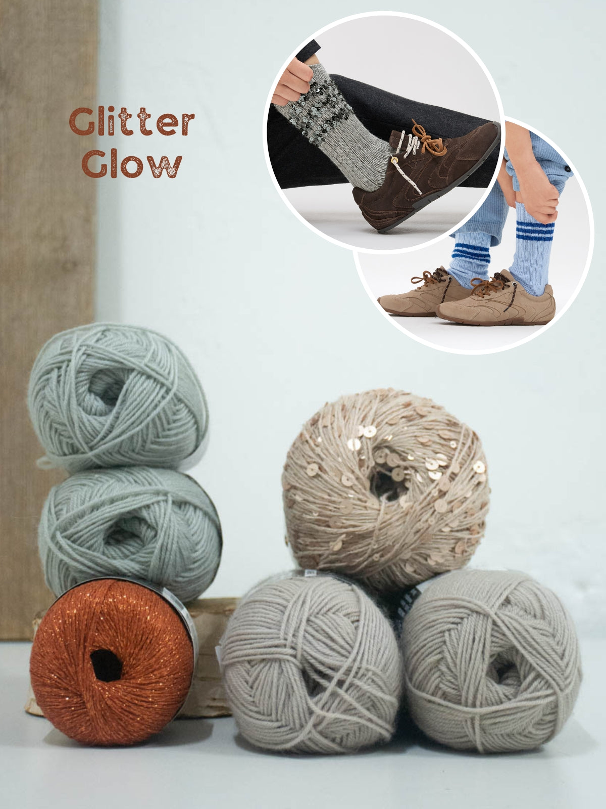 Sind Sie noch auf der Suche nach dem perfekten Paar Socken, um Ihr festliches Outfit abzurunden? Dann müssen Sie nicht weiter suchen. Mit diesem Paket können Sie zwei Paar festliche Socken stricken: ein Paar mit Glitzerstreifen sowie ein Paar mit Paillettenstreifen.