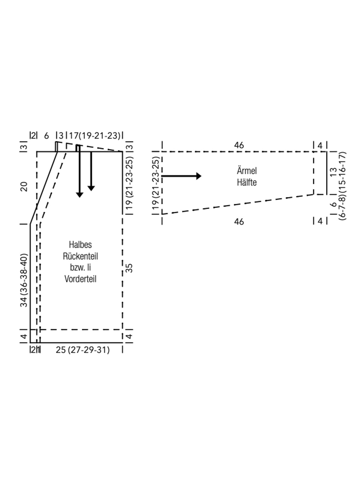 Die Jacke wird gestrickt mit Gigante, einem Garn aus 70 % Alpaka und 30 % Polyamid. Die Anleitung ist in den Größen 36 bis 50 ausgeschrieben.