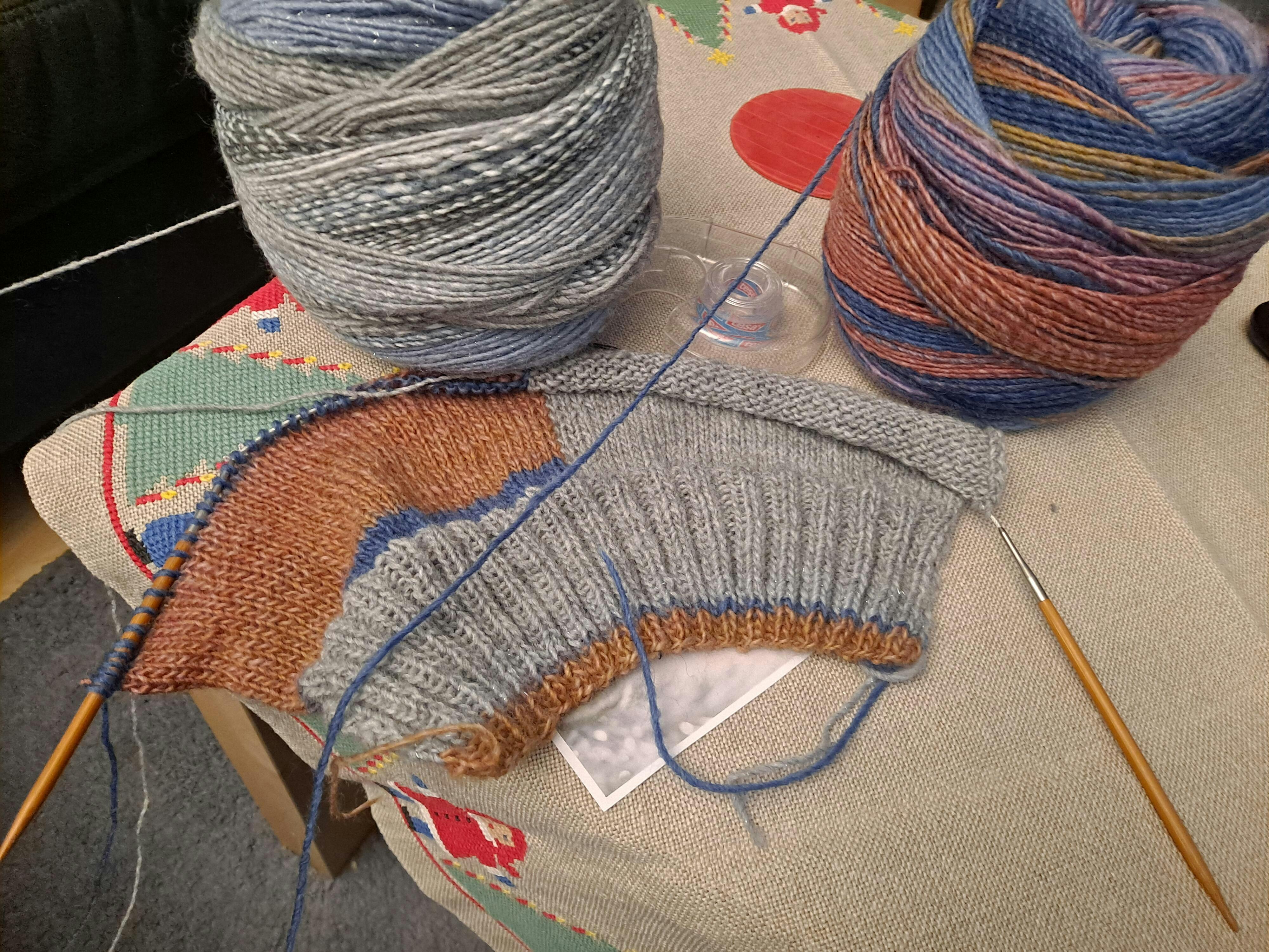 Ich würde ja gerne ein Foto hochladen, aber ich muss gestehen, dass ich gerade gestern erst mit dem Stricken begonnen habe. Ich kann also nur ein angefangenen Stück Pullover zeigen.