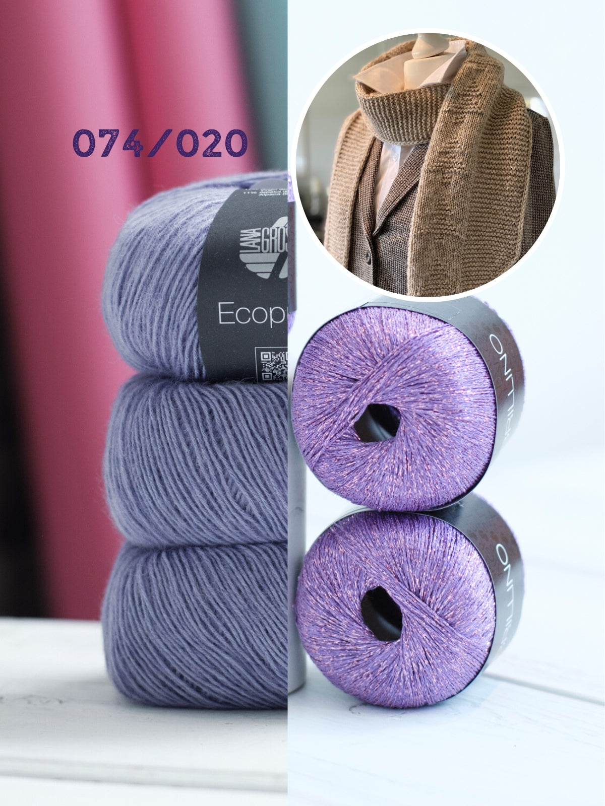 Das Strickpaket besteht aus 3 Knäueln Ecopuno, 3 Knäueln Brillino und der digitalen Strickanleitung. Die benötigten Stricknadeln (4,5 mm und ggf. Maschenmarkierer) können Sie unten in Ihren Warenkorb legen.