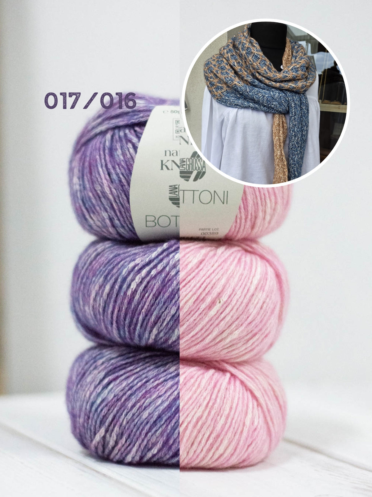 Das Paket besteht aus 5 Knäueln Bottoni in 2 verschiedenen Farben und der digitalen Strickanleitung. Die benötigten Stricknadeln (4 mm) können Sie direkt hier in Ihren Warenkorb legen.