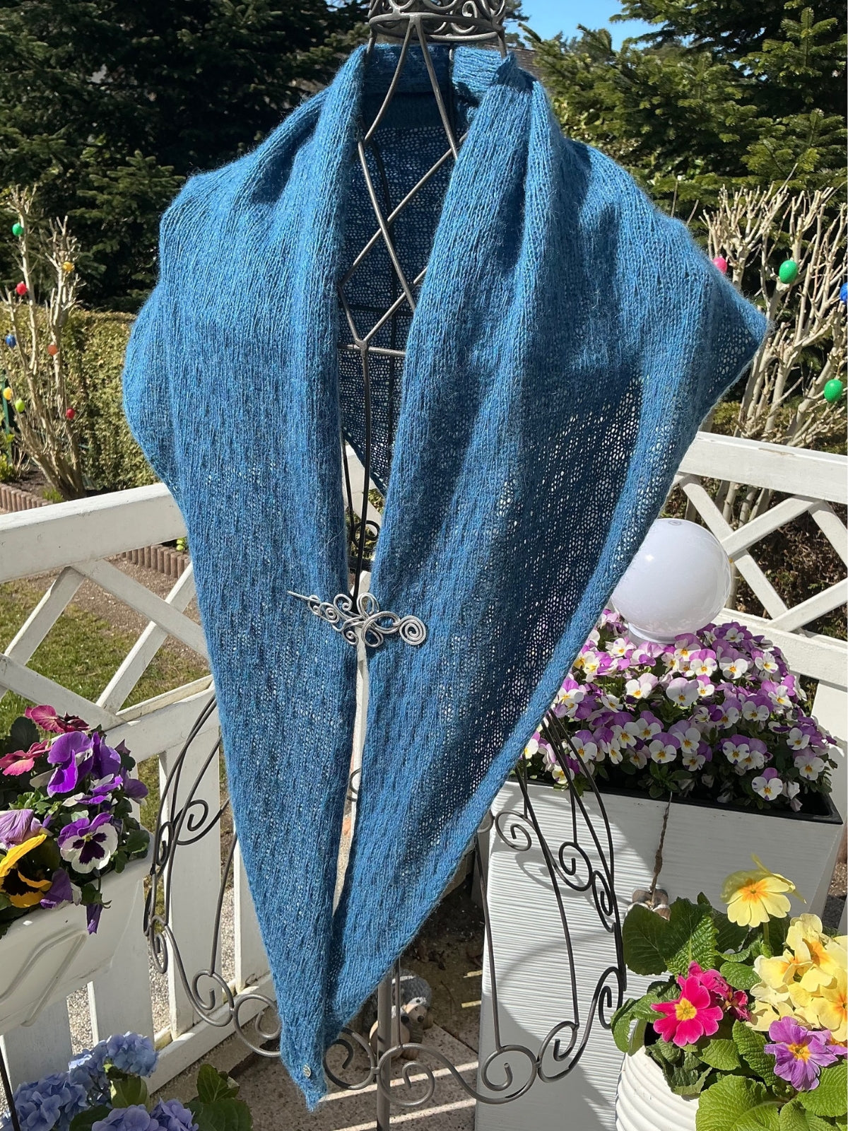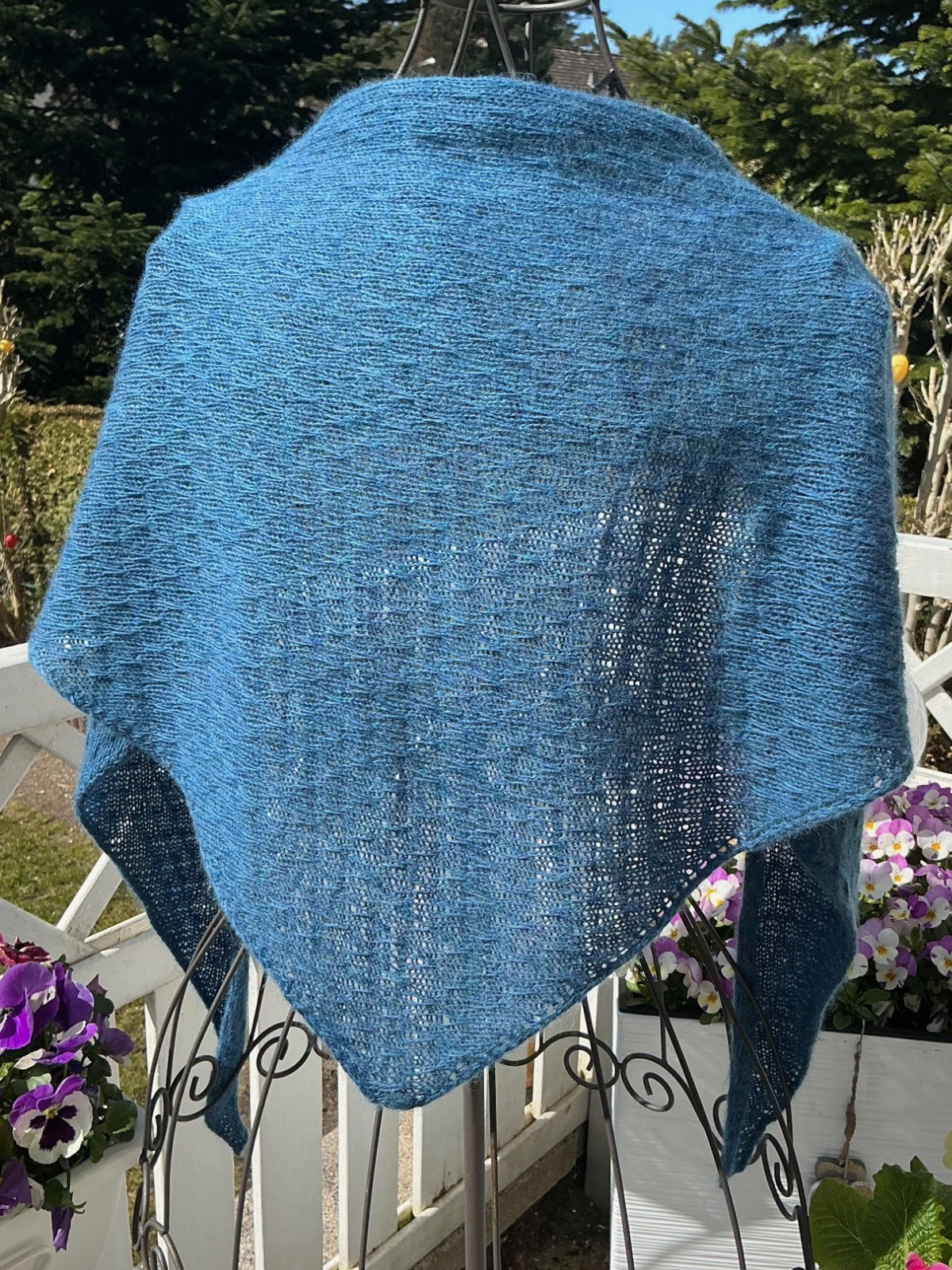Dieses Design von Liza’s Laden ist eine wunderschöne Frühlingsstola. Sie arbeiten ein Hebemaschenmuster, ein einfaches, aber wirkungsvolles Design. Ihre Teststrickerin Claudia hat dieses Tuch aus Ecopuno gestrickt.