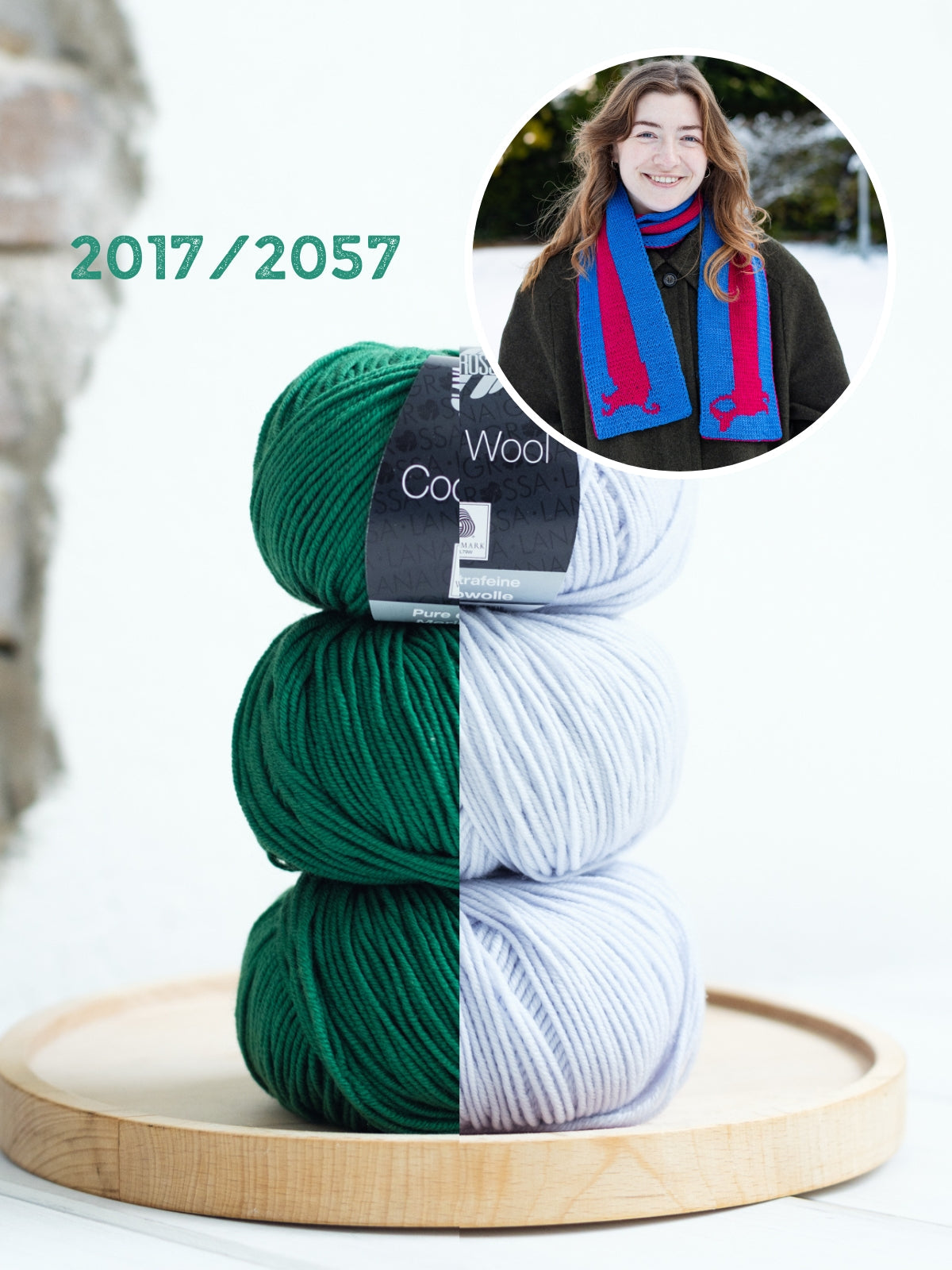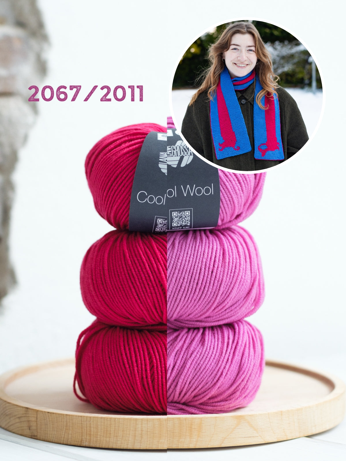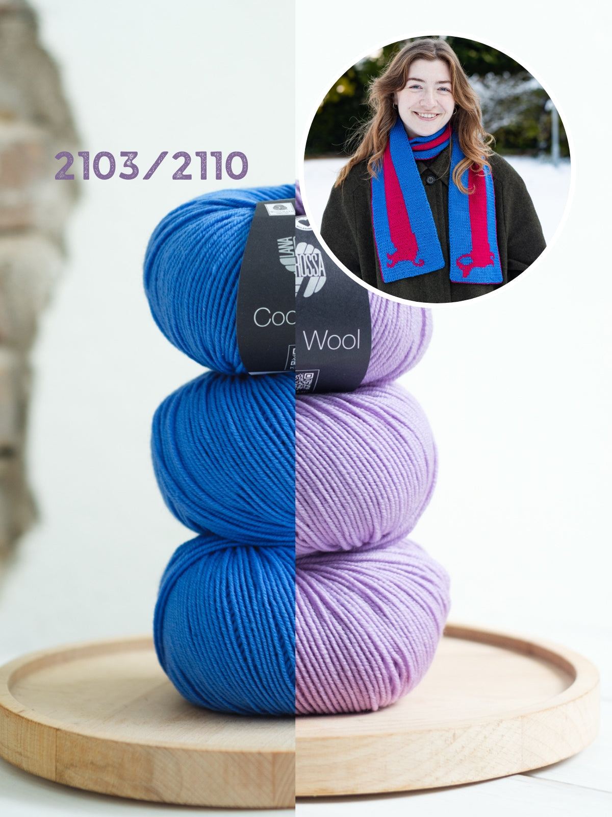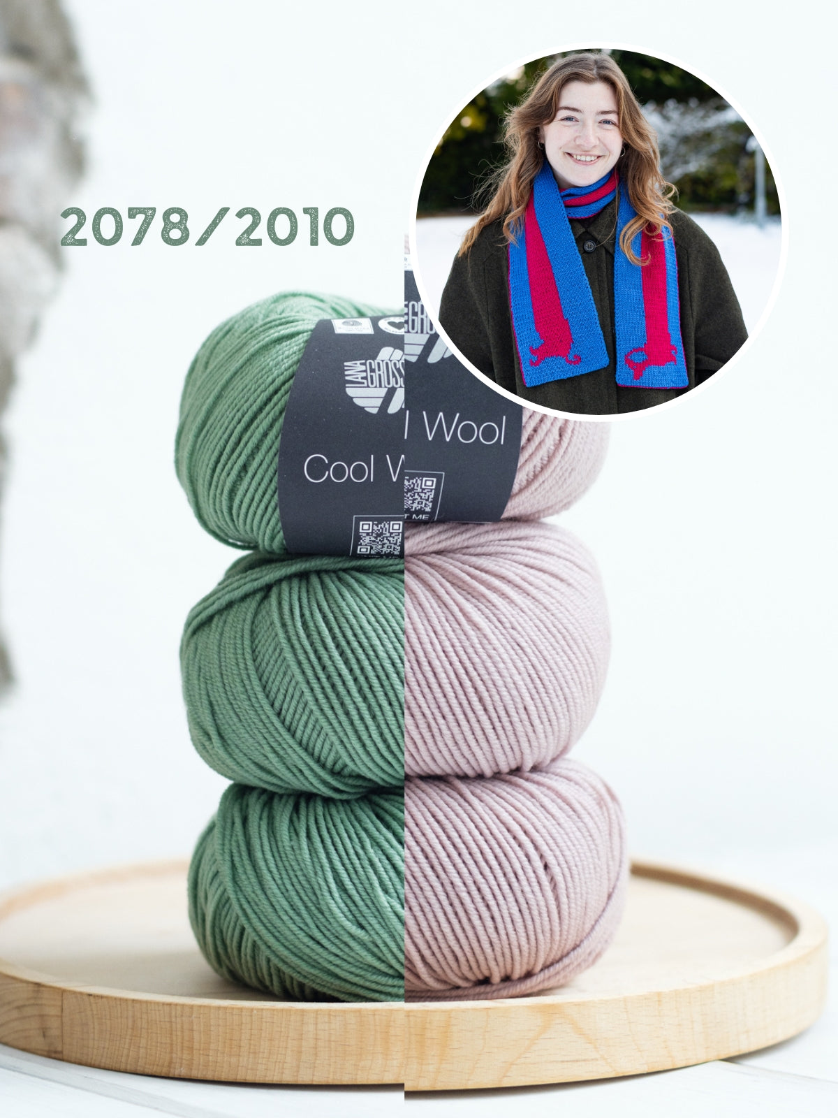 Das Strickpaket besteht aus 4 Knäueln Cool Wool in zwei verschiedenen Farben sowie der englischsprachigen Strickanleitung. Die benötigten Stricknadeln in 3,5 mm sowie ein Nadelspiel in 4 mm können Sie weiter unten Ihrem Warenkorb hinzufügen.