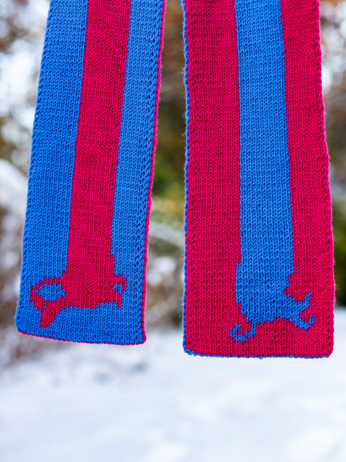 Der Schal wird in der 'Doppelstricken' Technik gestrickt, wodurch sich die Farben auf der Rückseite spiegeln. Die englischsprachige Anleitung verweist auf Video Tutorials und enthält außerdem ein Zählmuster sowie vollständig ausgeschriebene Anweisungen. Lieber häkeln? Dieses Paket finden Sie hier.
