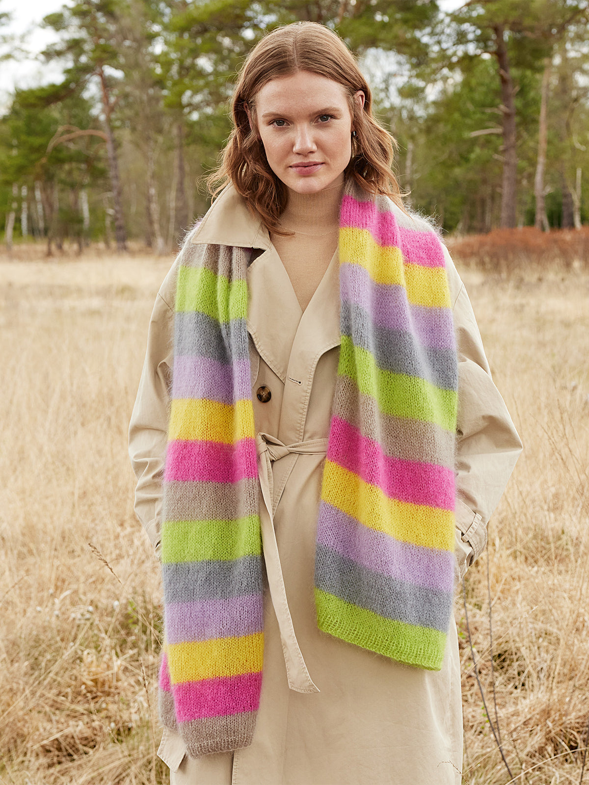 Wie fröhlich ist dieser Schal? Mit vielen verschiedenen Farben stricken Sie farbenfrohe Streifen – so wird jedes Outfit garantiert zum Hingucker! Wir haben verschiedene Farbkombinationen fotografiert, damit Sie eine bessere Vorstellung haben und Ihre Lieblingskombination leichter auswählen können.