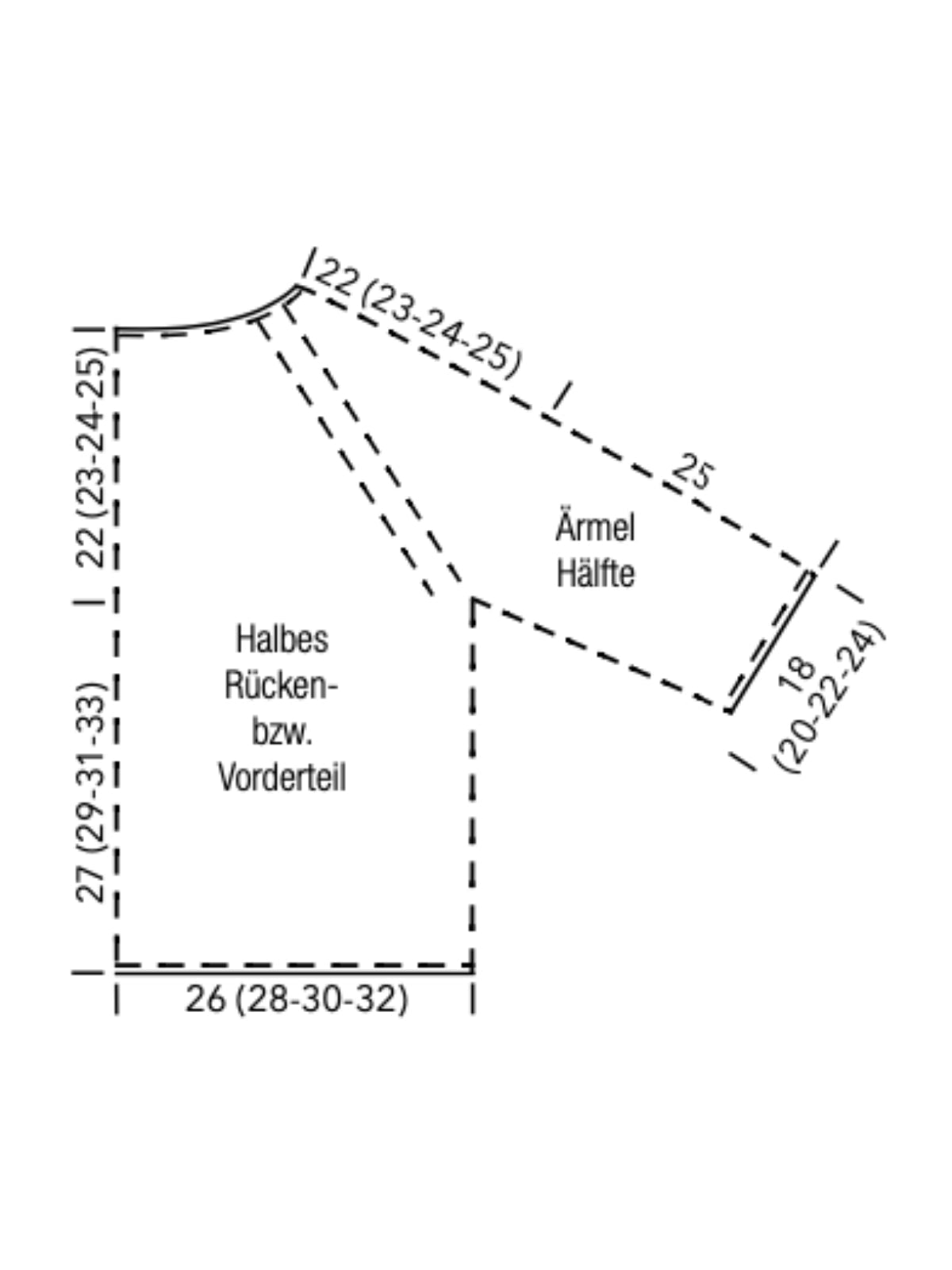 Der Kurzarmpulli wird von oben nach unten in einem Stück stets mit doppeltem Faden, je Qualität 1 Faden, gestrickt.