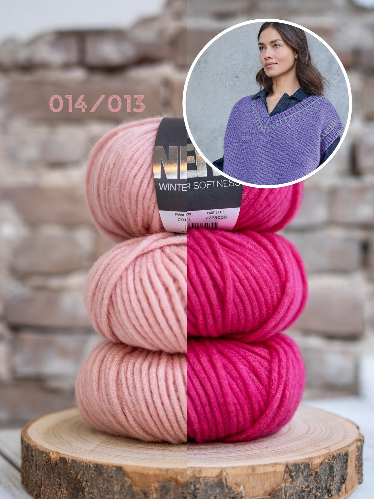 Der Pullunder wird gestrickt mit Winter Softness, einem Garn aus 62 % Merinowolle und 38 % Baumwolle. Die Anleitung ist in den Größen 36 bis 50 ausgeschrieben.